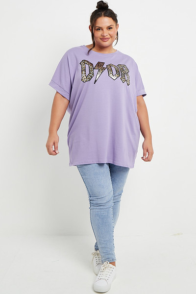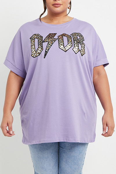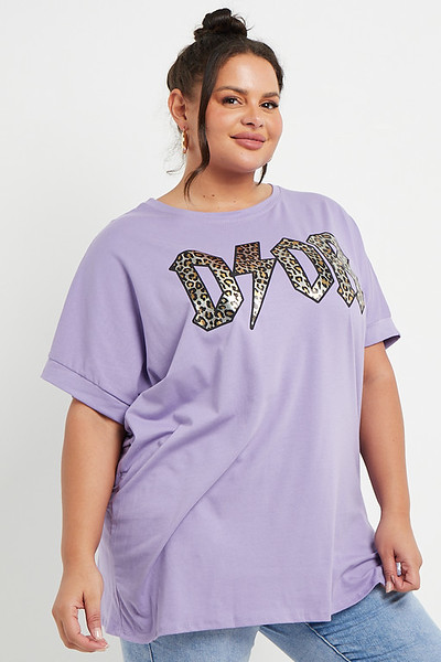 One Size Lilac Slogan Animal Print Oversized T-shirt Top x 5