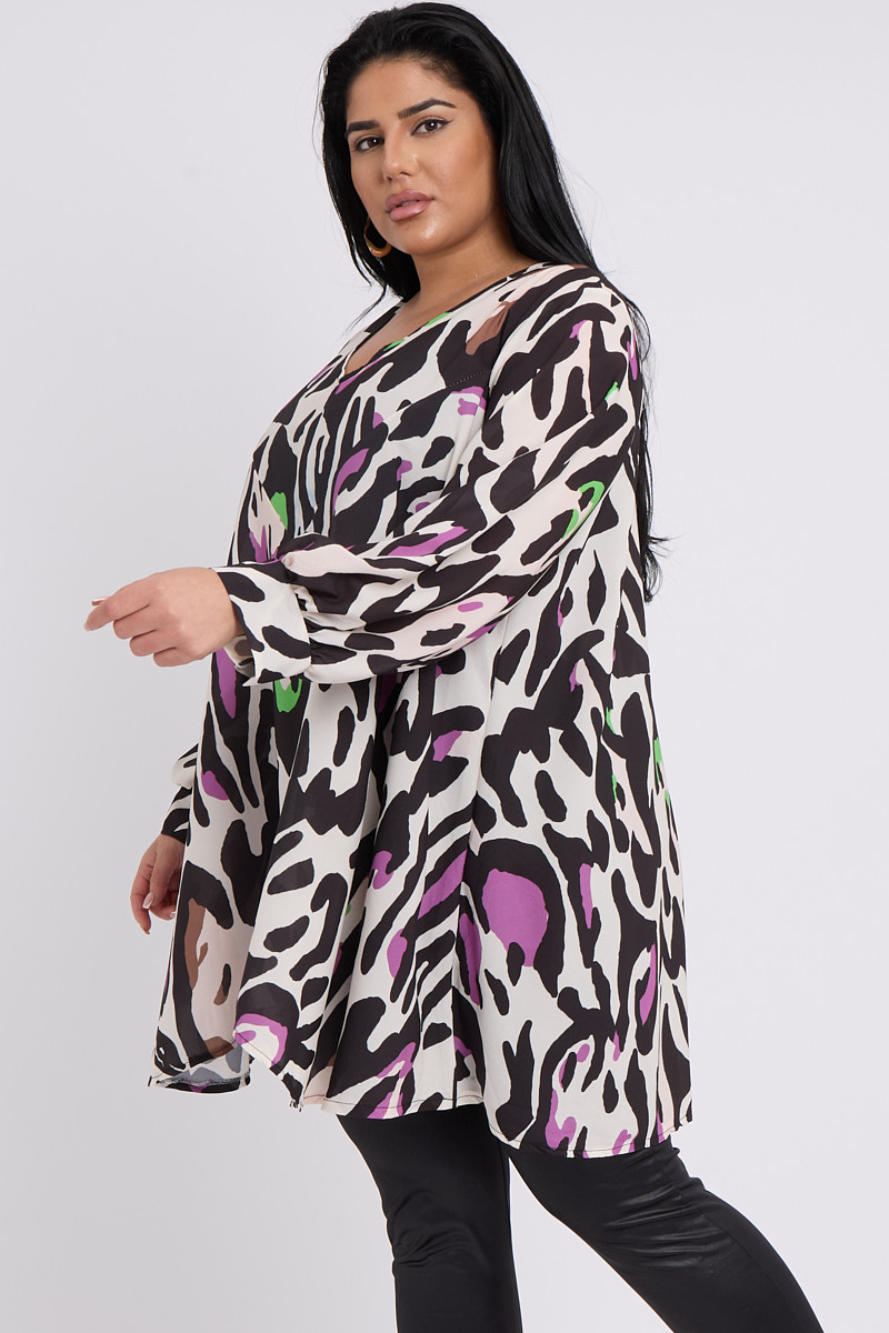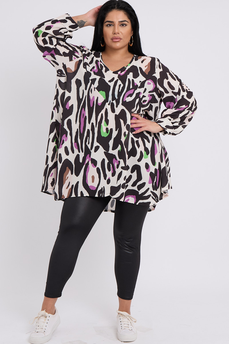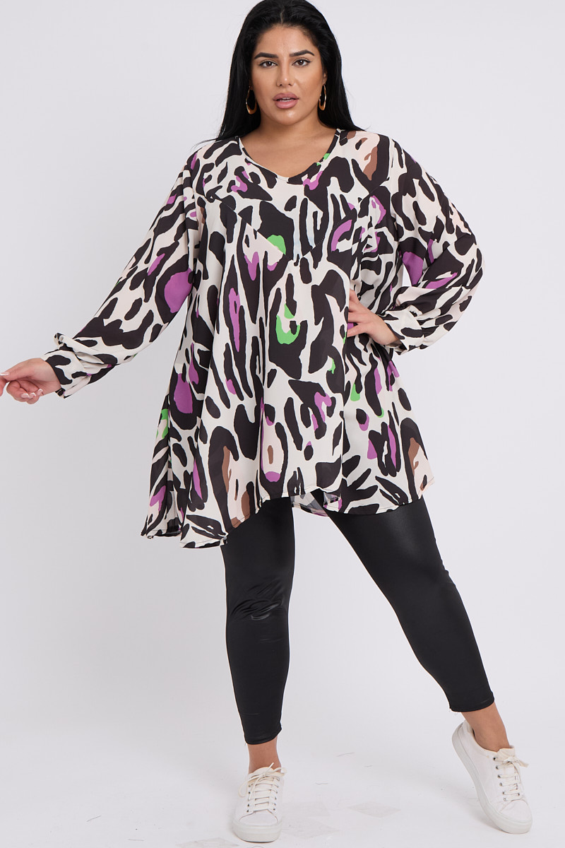 Plus Size Black Purple Printed V Neck Long Sleeve Flare Top x 5