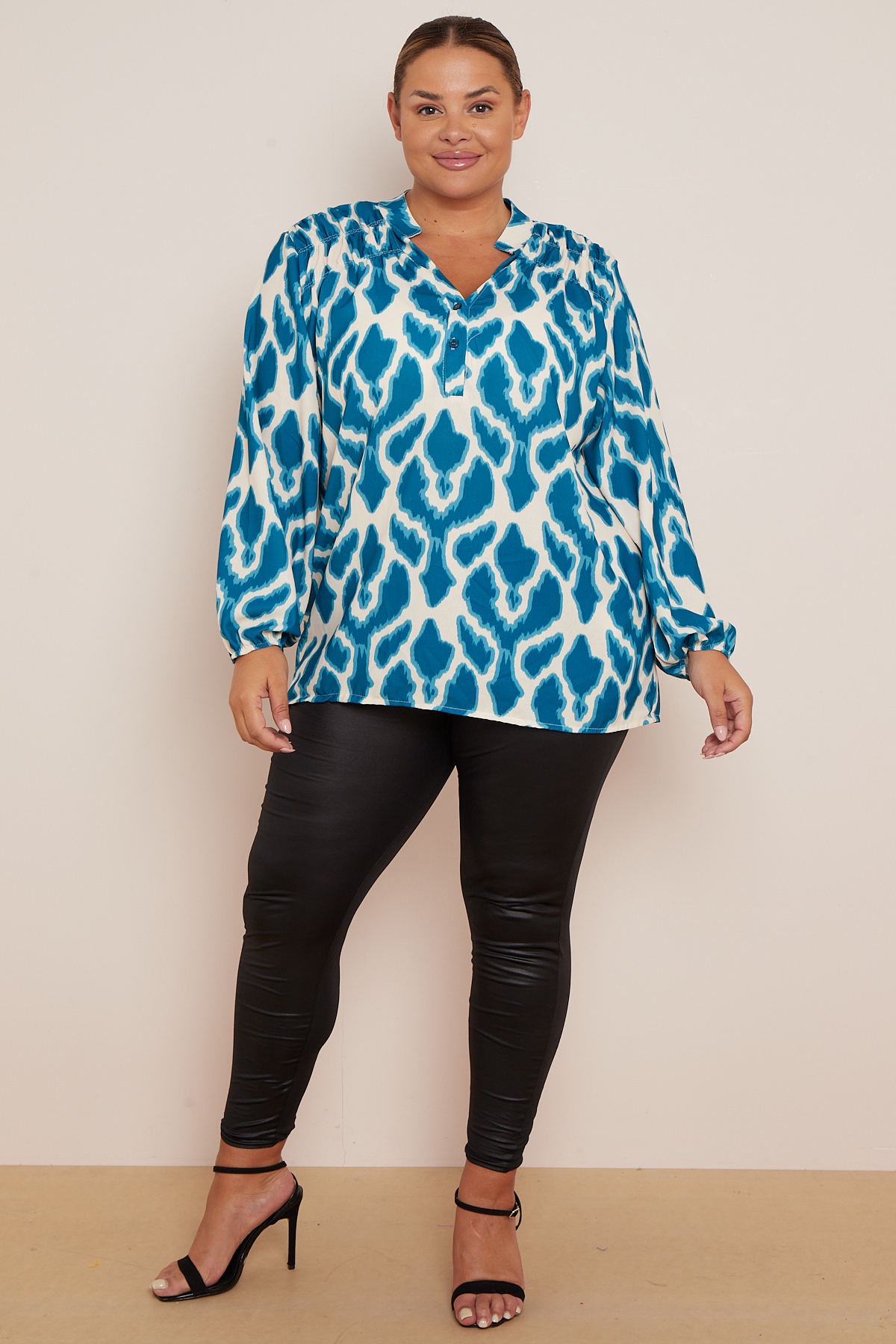 Plus Size Blue Printed Long Sleeve Top x 5