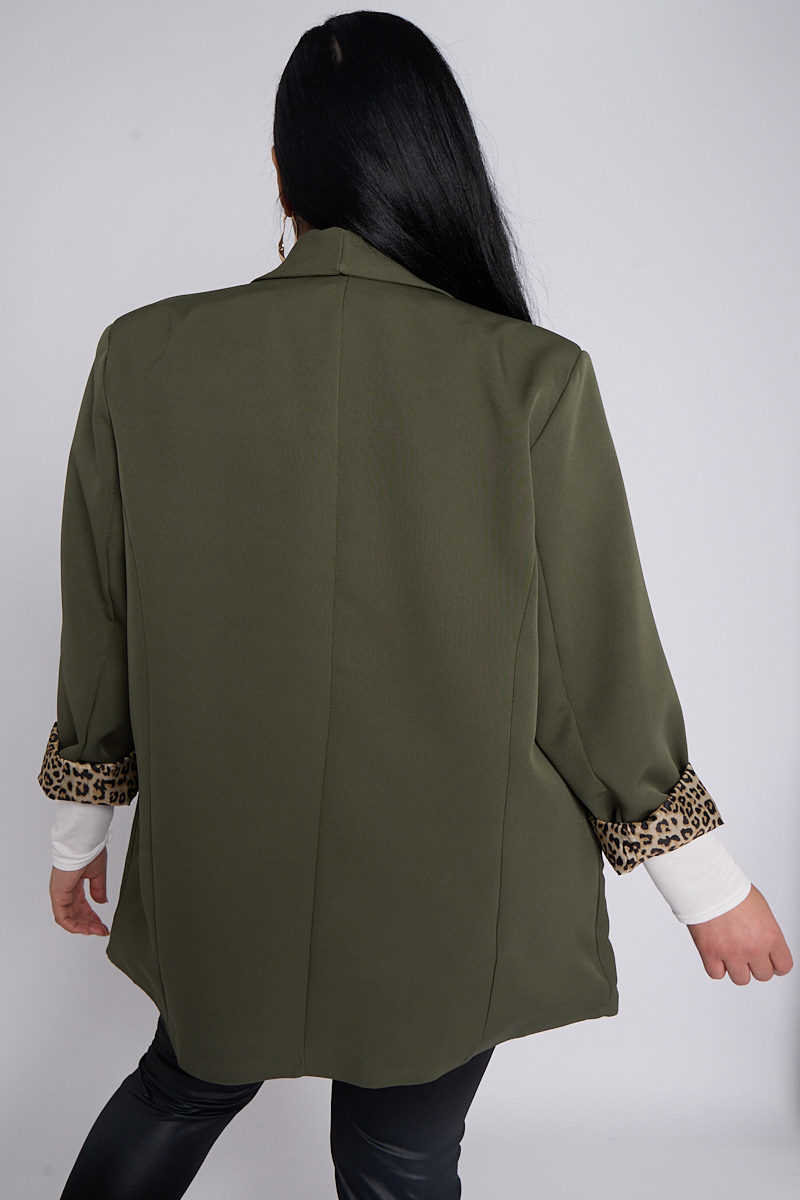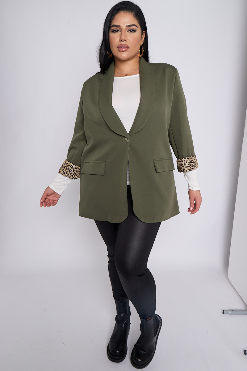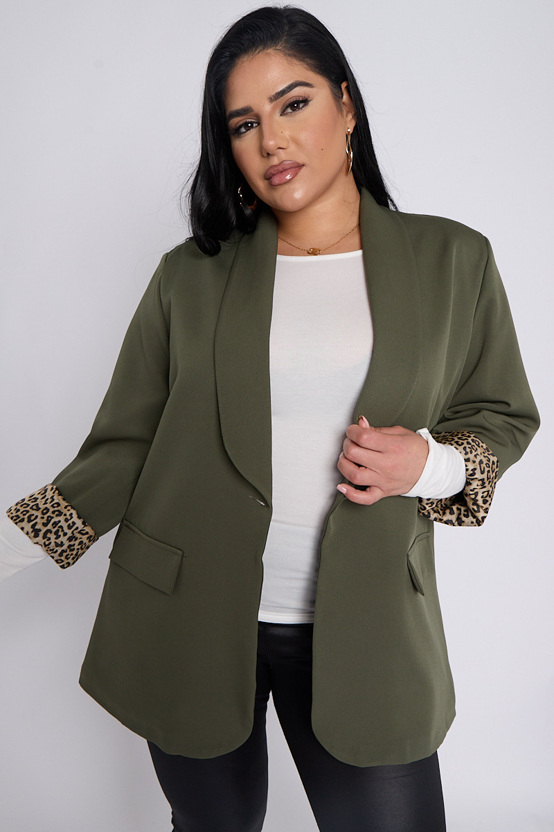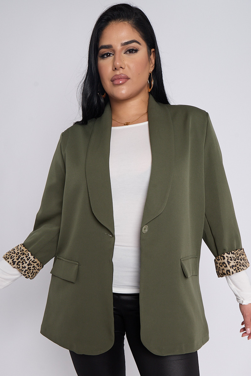 Plus Size Khaki Leopard Detail Blazer With Pocket Detail x 5