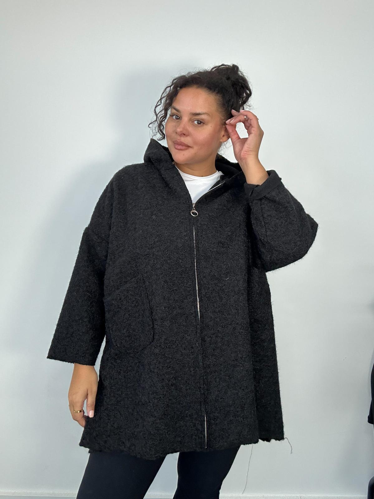 Upgrade your outerwear collection with our Curve Collection Hooded Zip Coat. This cosy piece features a textured knit finish, front zip closure with ring pull, and an oversized hood for extra warmth. The relaxed silhouette and front patch pockets make it a practical yet stylish choice for your customers, ideal for layering through the colder months.