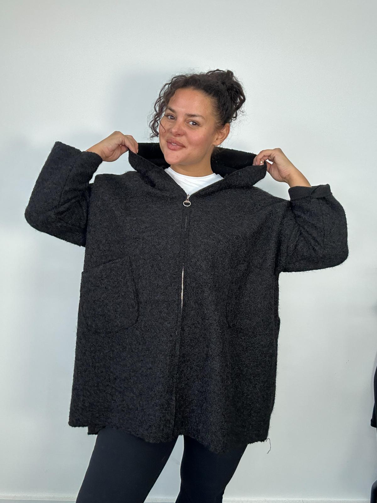 Curve Collection Plus Size Black Hooded Zip Coat x 2, 3 & 5 Pack Options