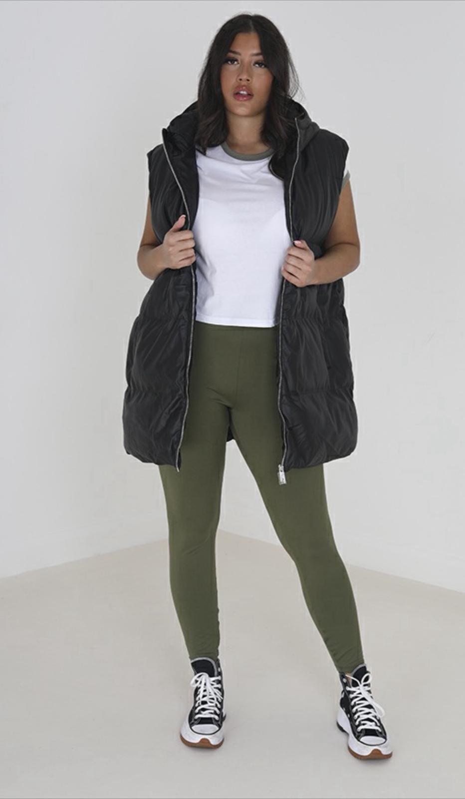Upgrade your outerwear offering with our Curve Collection Plus Size Mid Length Puffer Gilet in classic black. Designed for layering, this padded gilet features a sleek longline silhouette, zip fastening, and a cozy hood for maximum practicality. Its lightweight yet insulated build ensures warmth without bulk, making it the perfect transitional piece for autumn through spring. A versatile staple your customers will love for casual, street, or athleisure looks.