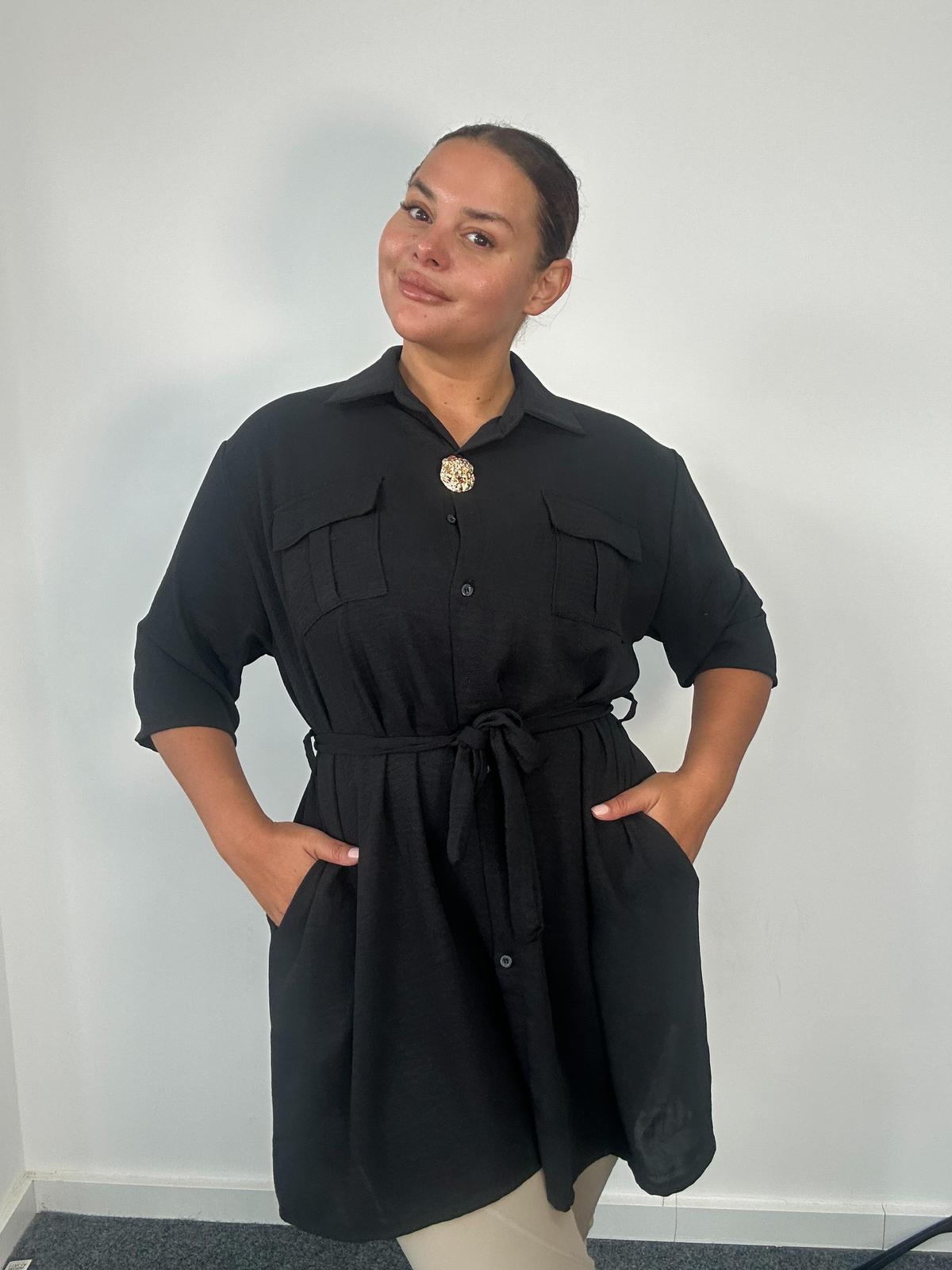 Curve Collection Plus Size Black Utility Shirt Dress x 2, 3 & 5 Pack Options