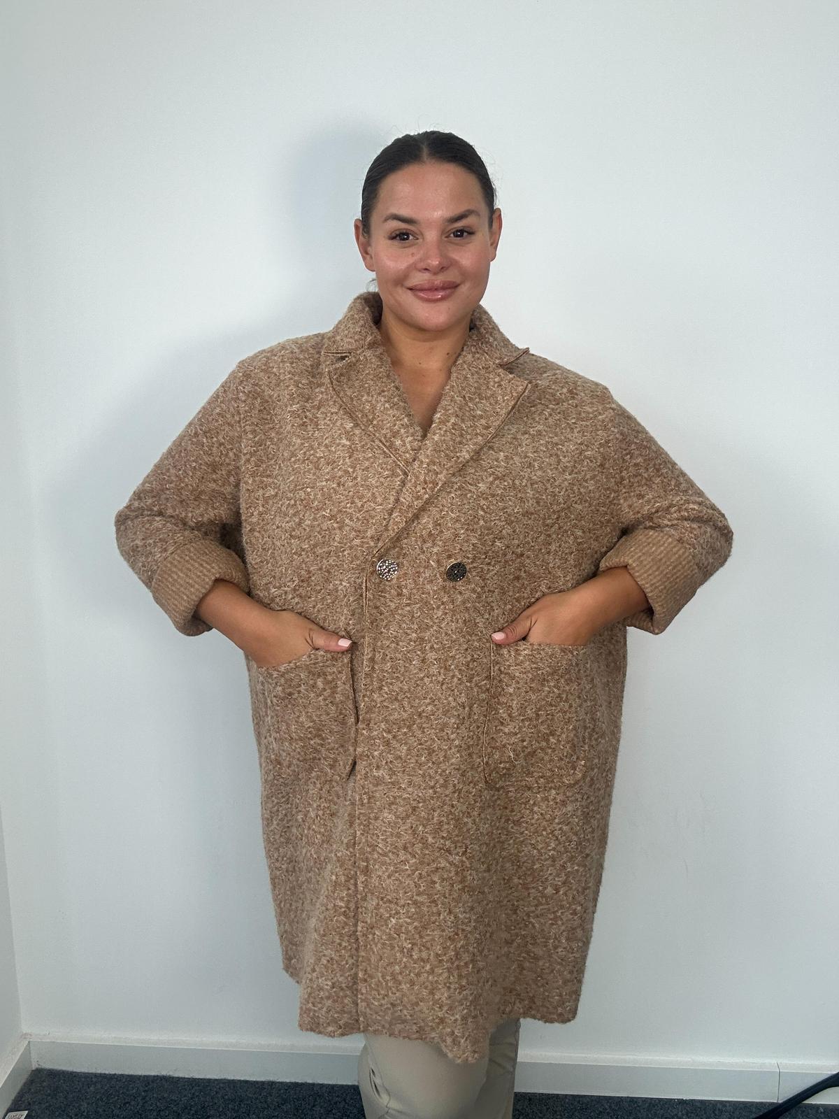 Bring timeless elegance to your outerwear range with our Curve Collection Double-Breasted Coat. Crafted from a soft wool-blend fabric, this coat features a classic double-breasted button closure, wide notch lapels, and practical front patch pockets. The relaxed silhouette makes it easy to layer over knitwear and dresses, offering both style and comfort for the cooler months.