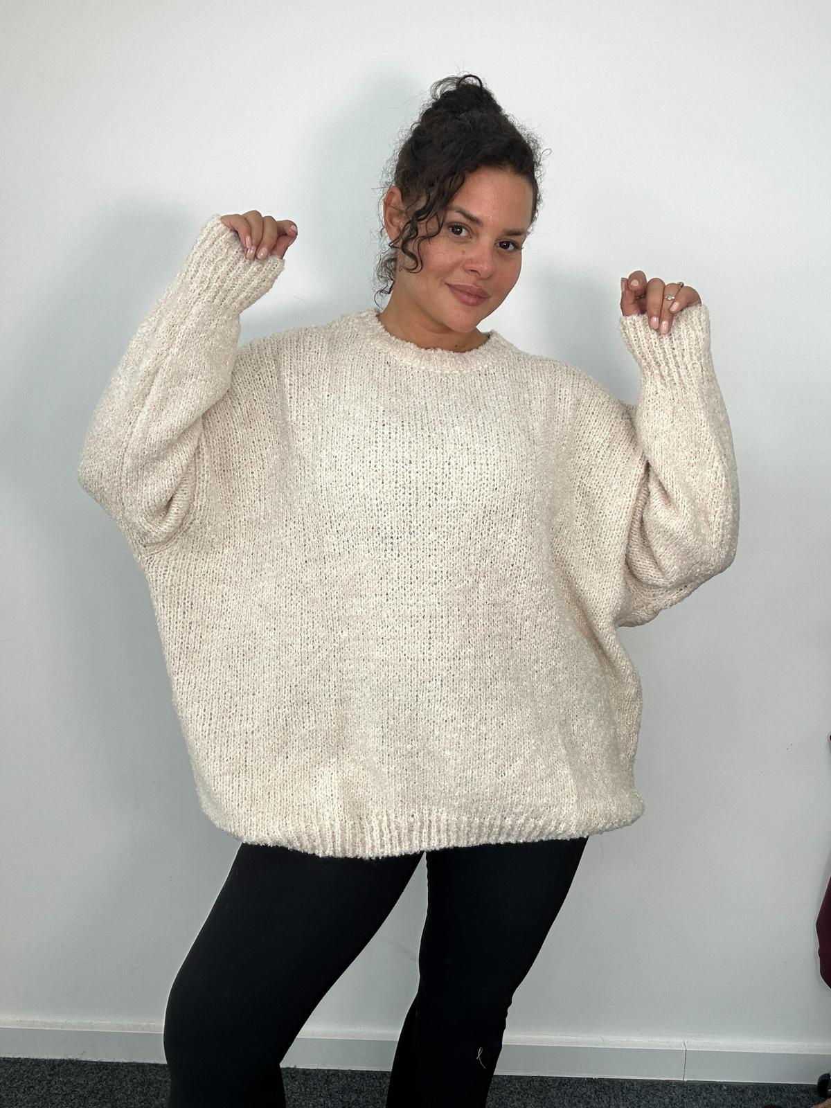 Refresh your knitwear range with our Curve Collection Oversized Cream Knit Sweater. Designed with a soft, textured knit and dropped shoulders, this sweater delivers ultimate comfort with a relaxed silhouette. It makes it a perfect layering piece for casual outfits, loungewear looks, or transitional seasons. A must-have for retailers seeking timeless, curve-friendly staples.