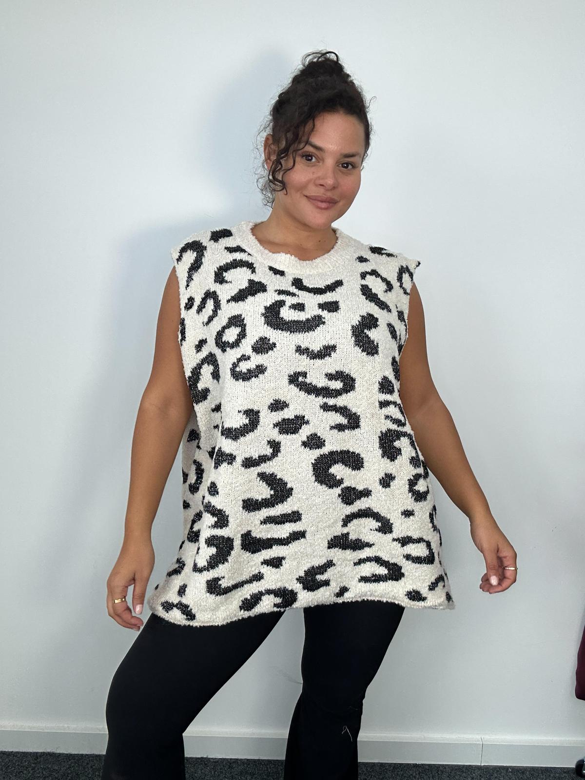 Bring a trendy layering piece to your plus-size range with our Curve Collection Sleeveless Leopard Knit Vest. This cosy knit vest features a leopard print pattern, a relaxed fit, and a soft textured finish. Perfect for styling over shirts, turtlenecks, or on its own for a statement look. A versatile addition to your wholesale offering, ideal for transitional seasons.