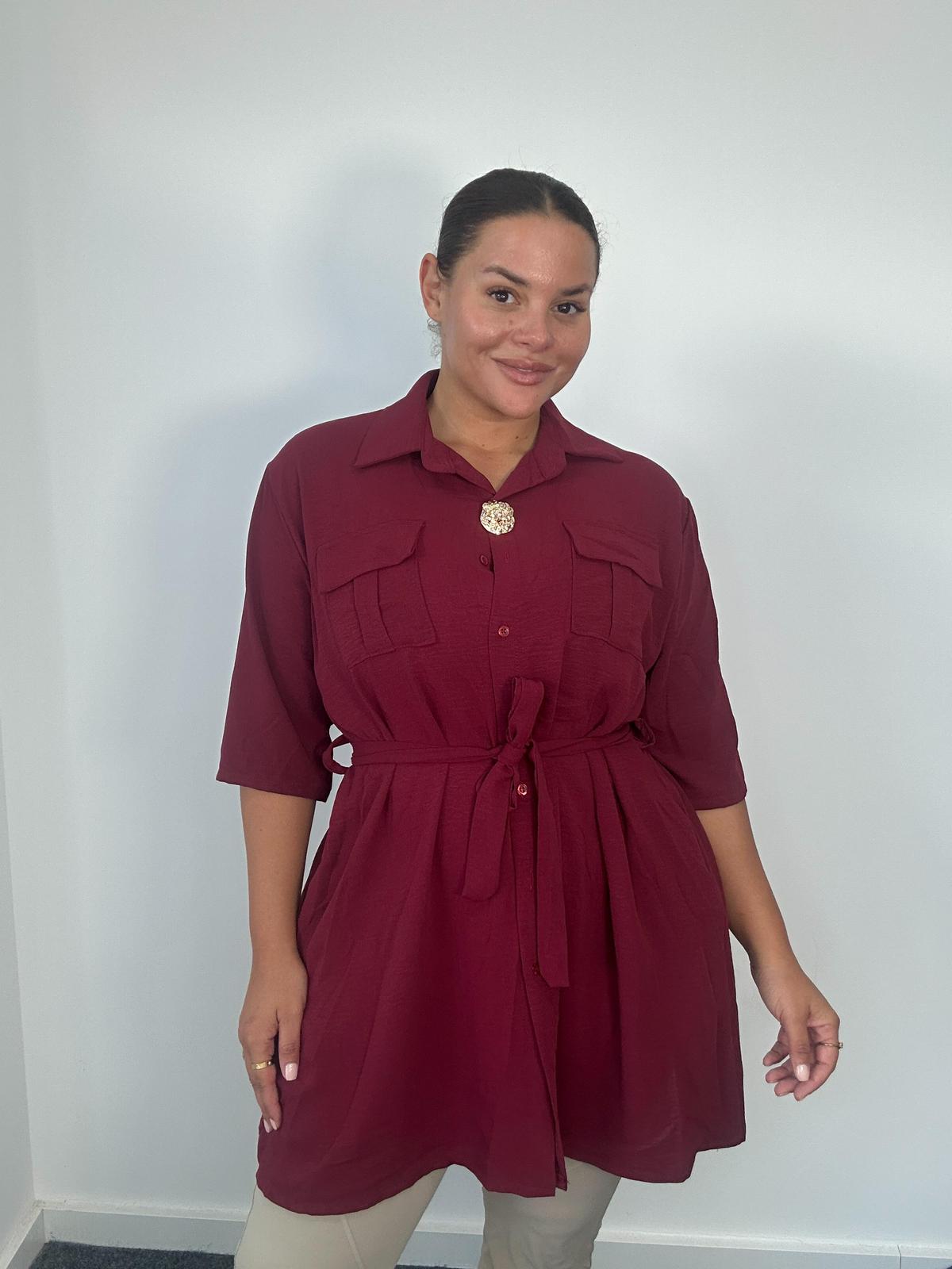 Curve Collection Plus Size Wine Utility Shirt Dress x 2, 3 & 5 Pack Options