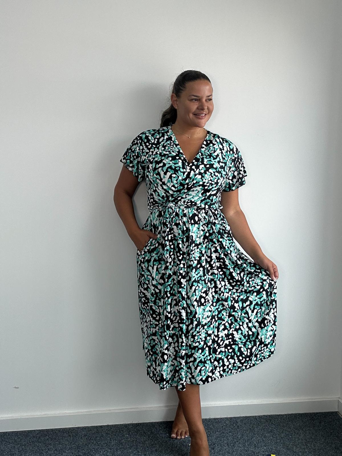 Curve Plus Size Abstract Animal Print Drawstring Midi Dress with Pockets x 2, 3 & 5 Pack Options