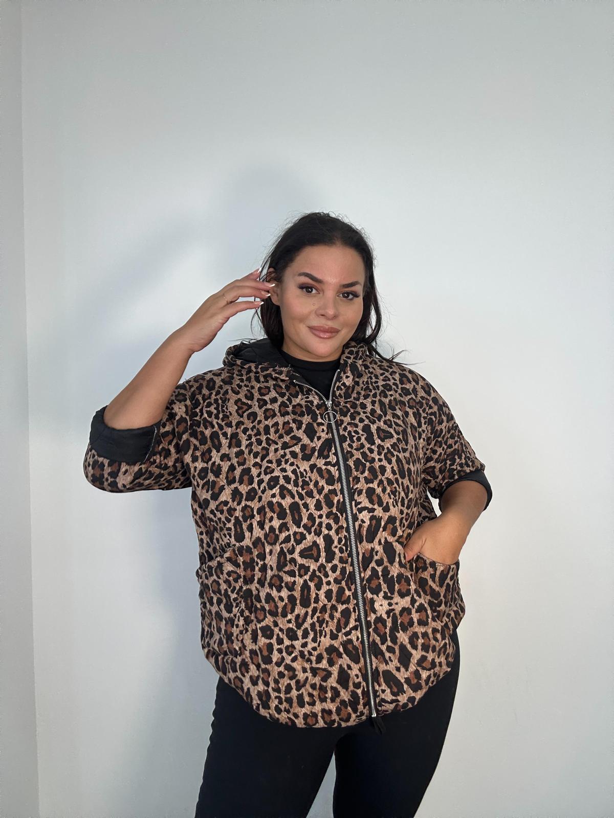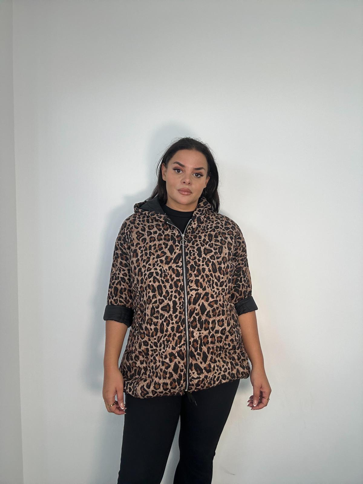Curve Plus Size Beige Leopard Print Hooded Padded Jacket with Zip x 2, 3 & 5 Pack Options