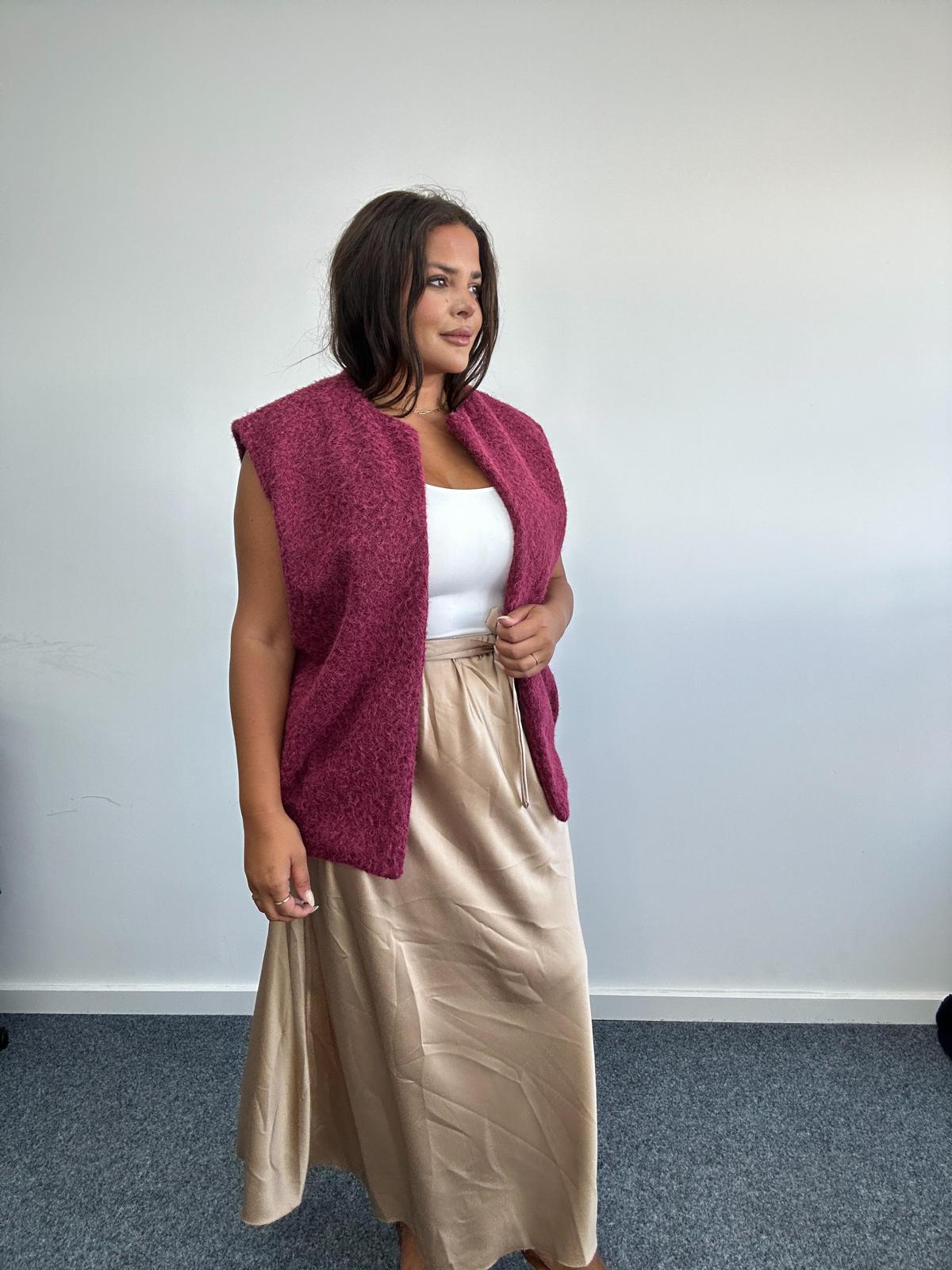 Curve Plus Size Berry Brushed Knit Sleeveless Gilet x 2, 3 & 5 Pack Options