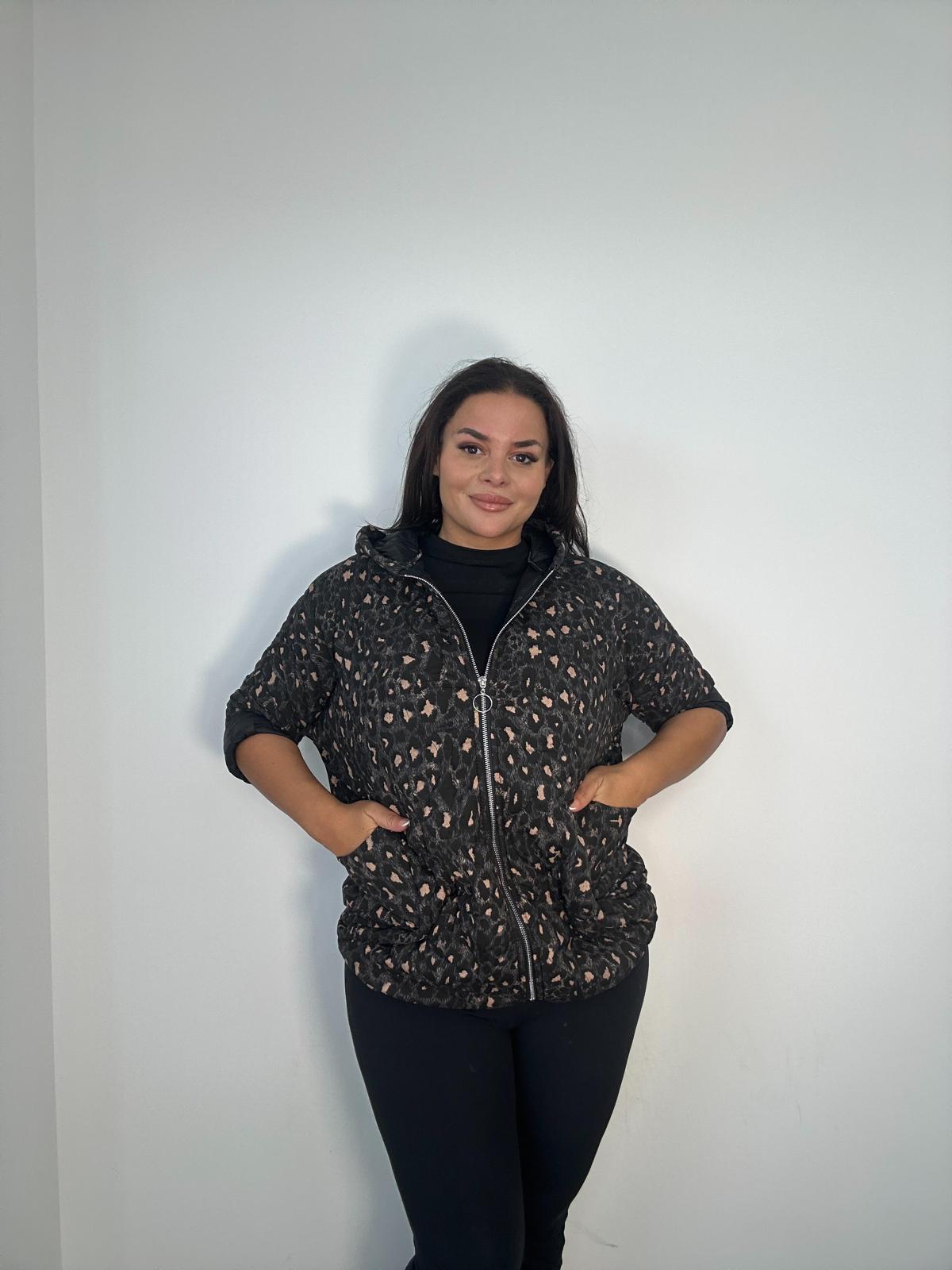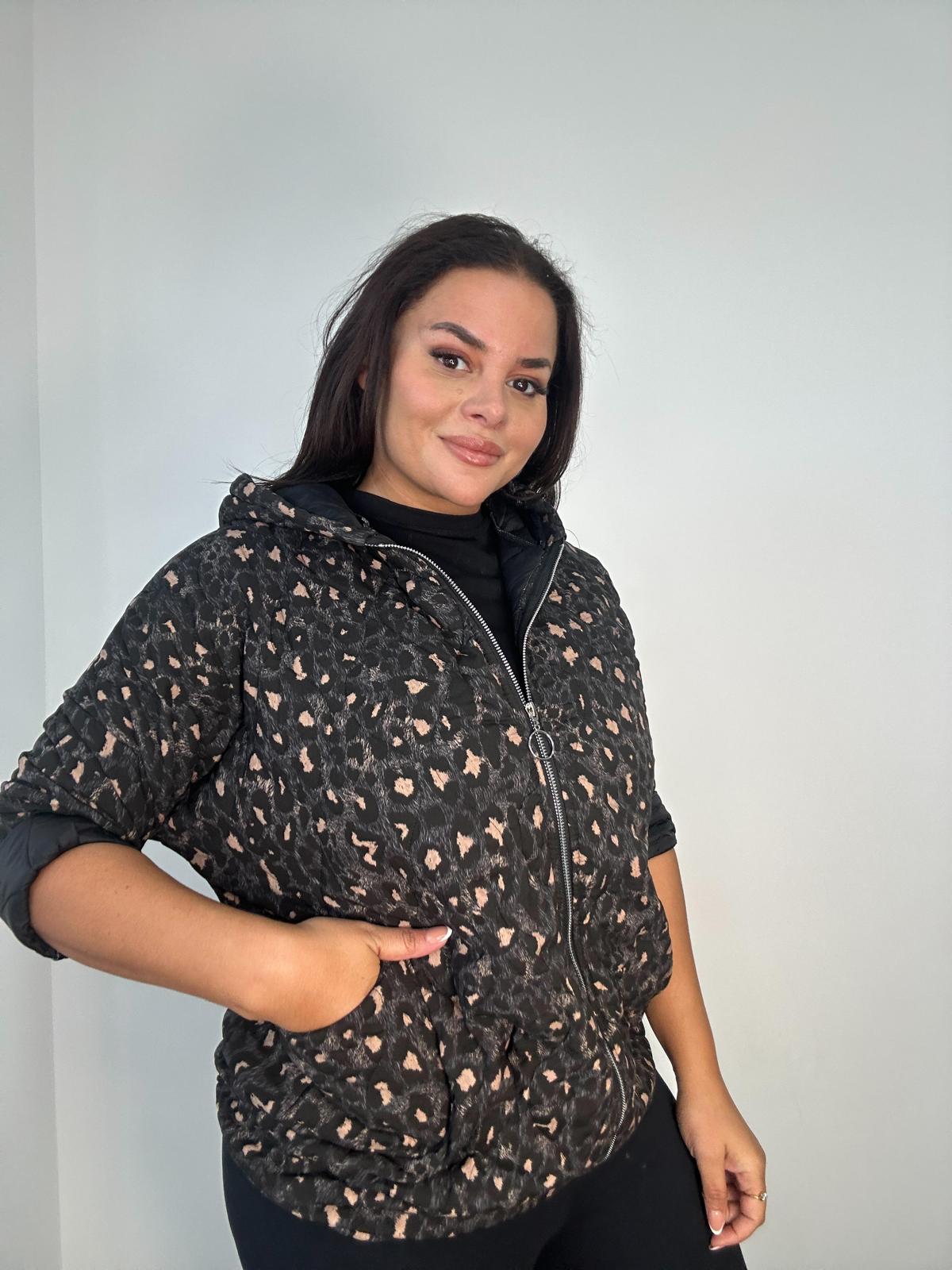 Curve Plus Size Black Leopard Print Hooded Padded Jacket with Zip x 2, 3 & 5 Pack Options