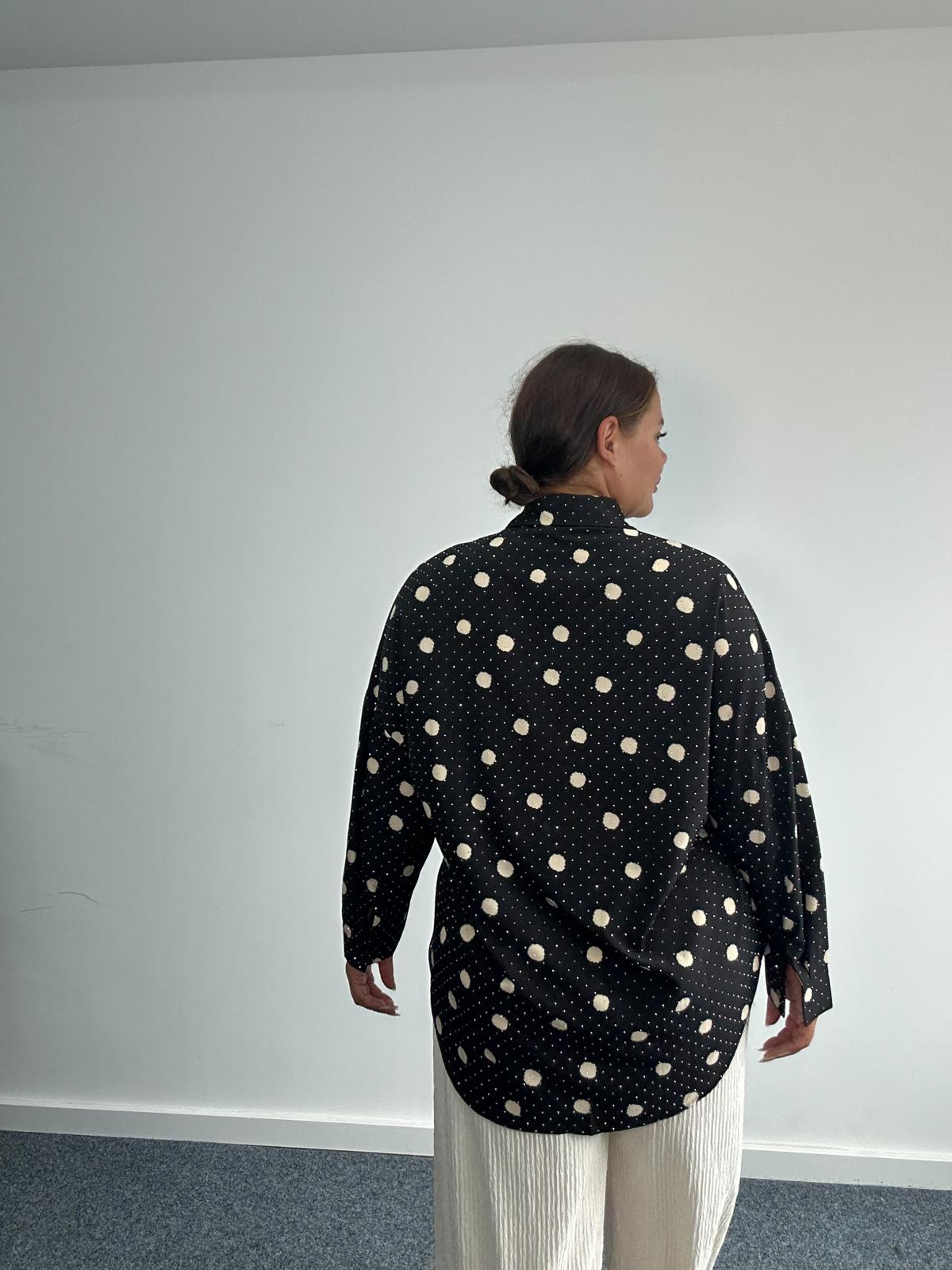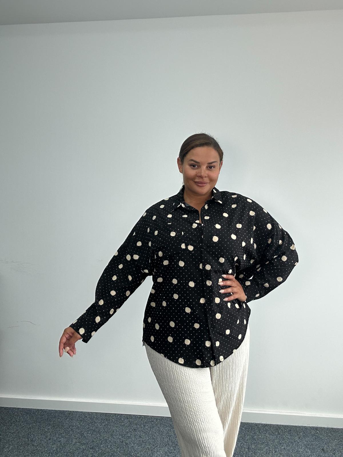 Add a timeless classic to your wholesale curve and plus size range with this polka dot shirt. Designed in a relaxed, easy to wear fit, it features long sleeves, button fastening, and a rounded hemline for a flattering silhouette. Perfect for both casual styling with jeans or dressed up with tailored trousers, this shirt offers versatility and effortless chic, a must-have transitional piece for the new season.