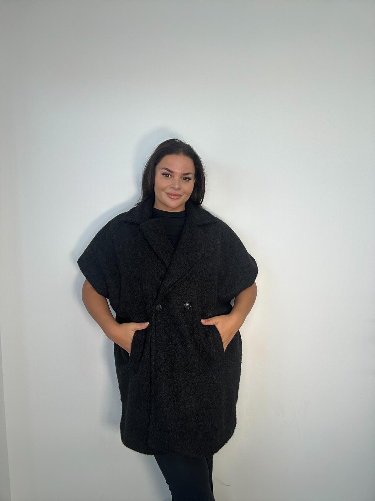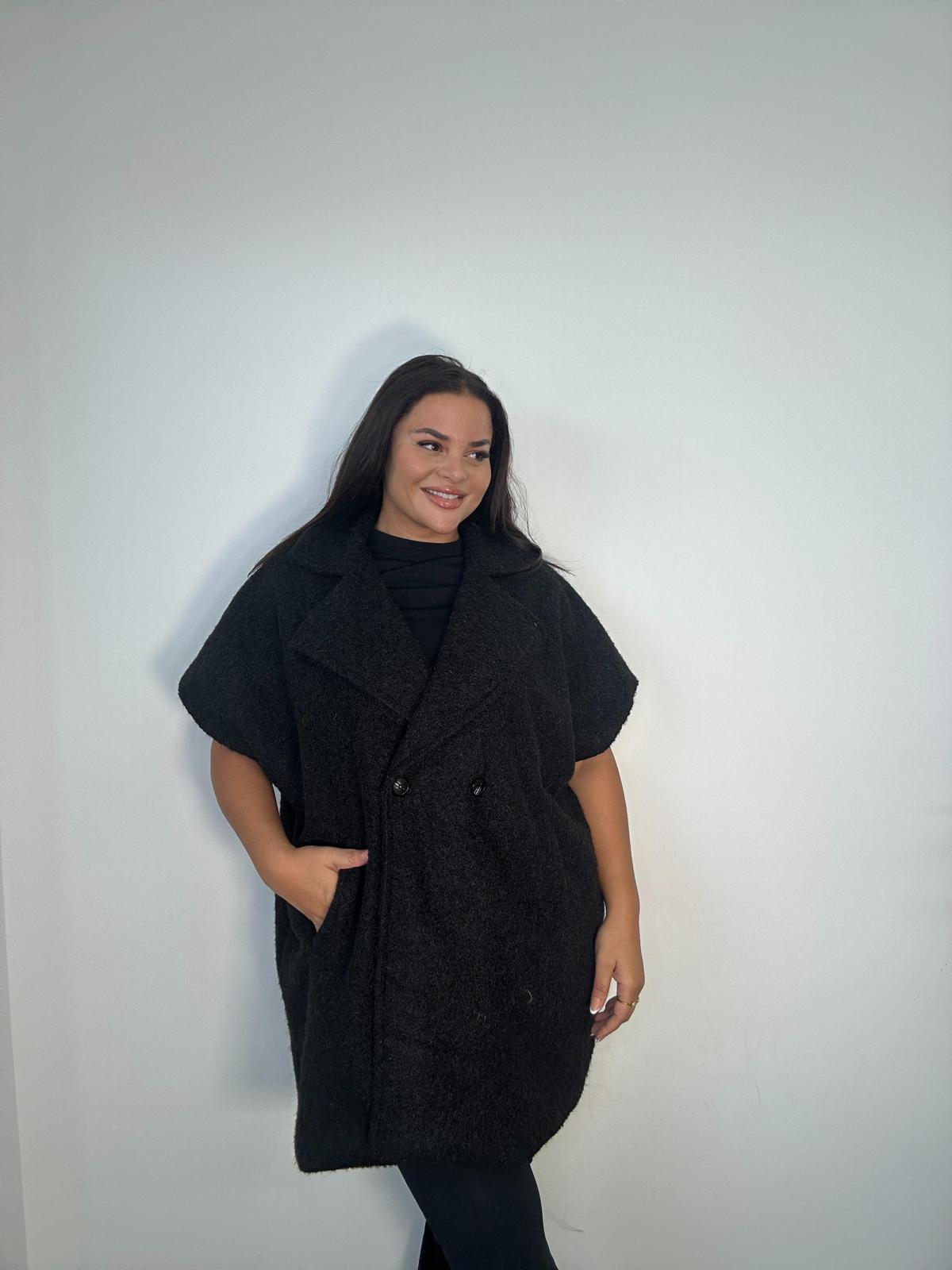 The Plus Size Short-Sleeve Double Breasted Coat is a stylish layering piece designed for curves. Featuring a soft textured fabric, wide lapel collar, and a classic double-breasted front with button detail, this coat offers a modern twist with its relaxed short sleeves. Functional side pockets and a longline silhouette make it versatile for smart and casual looks.
