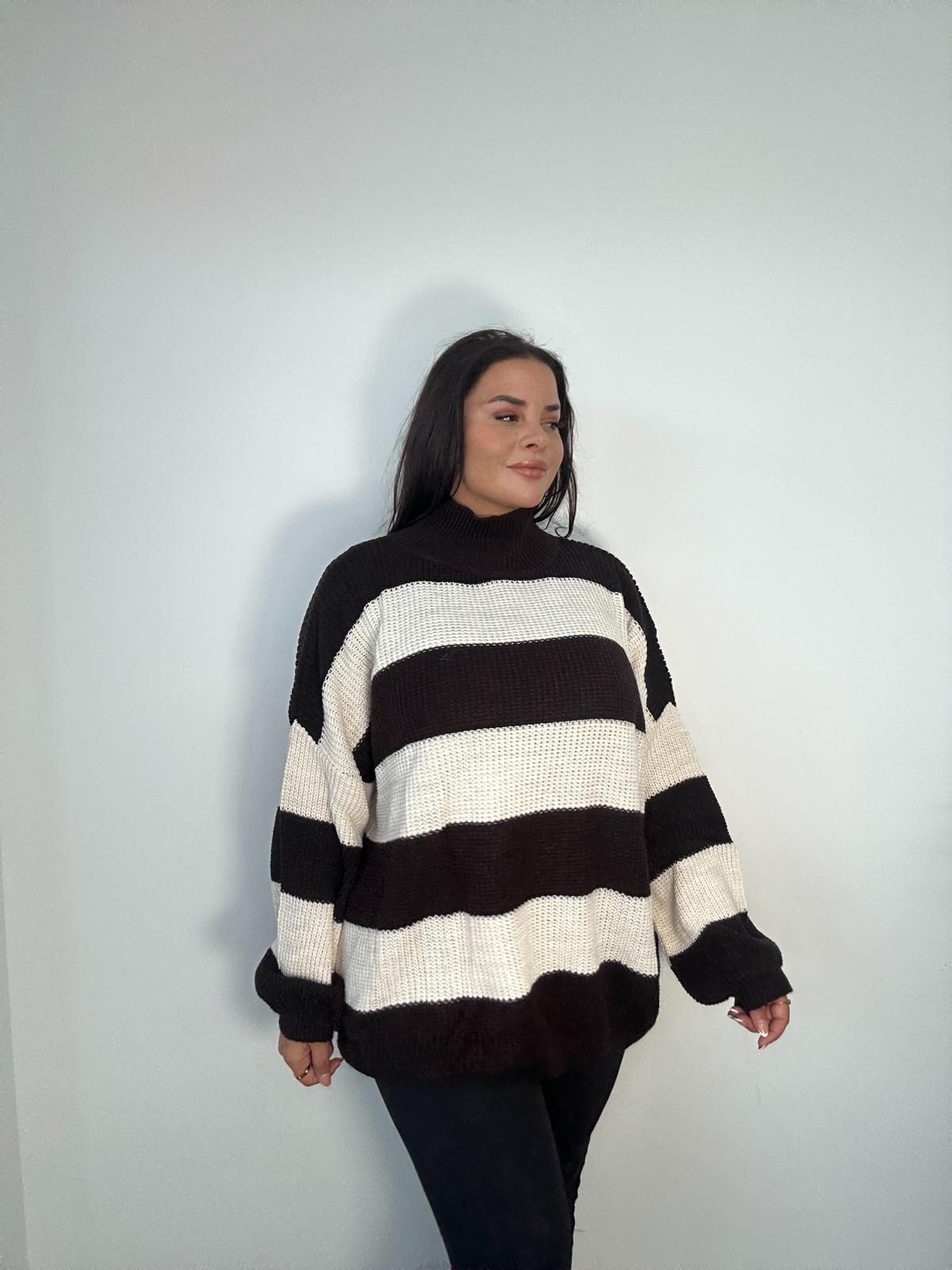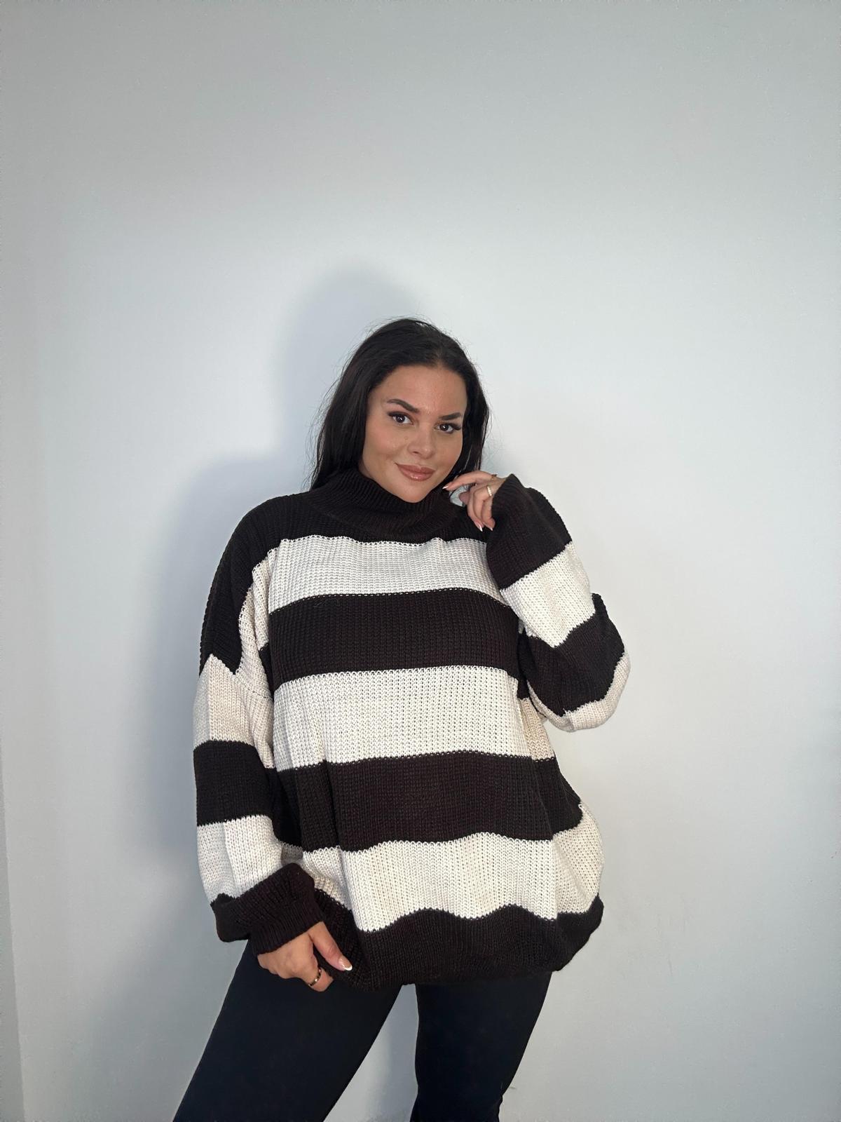 Curve Plus Size Black White Striped Oversized Jumper x 2, 3 & 5 Pack Options