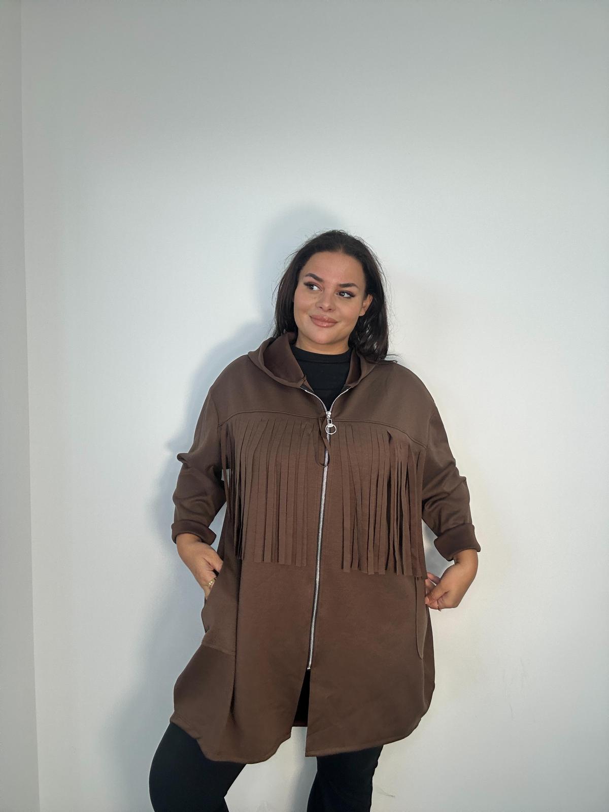 Curve Plus Size Brown Fringe Detail Zip Jacket x 2, 3 & 5 Pack Options