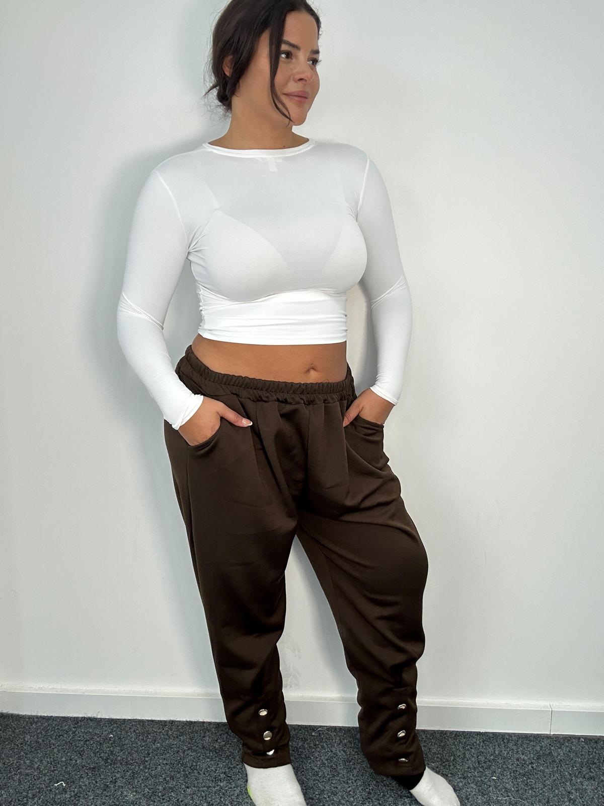Curve Plus Size Brown High Waist Jogger Pants with Button Hem x 2, 3 & 5 Pack Options