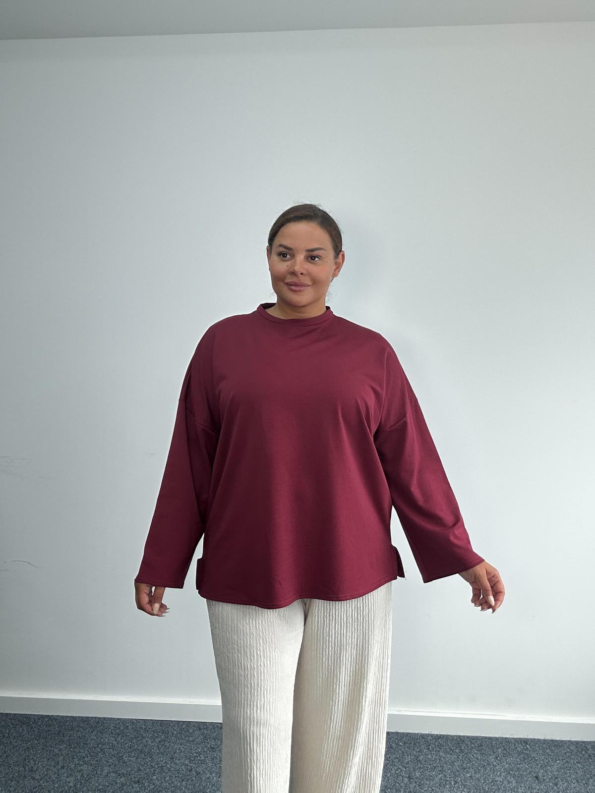 This Curve Plus Size Burgundy Long Sleeve Top is the perfect versatile staple for every wardrobe. Designed in a soft, lightweight fabric, it features a relaxed fit that drapes comfortably over curves. The crew neckline and dropped shoulder detail give it a casual yet polished look, making it ideal for layering or wearing on its own. Whether styled with jeans, wide-leg trousers, or skirts, this top is a must-have essential for effortless everyday wear.