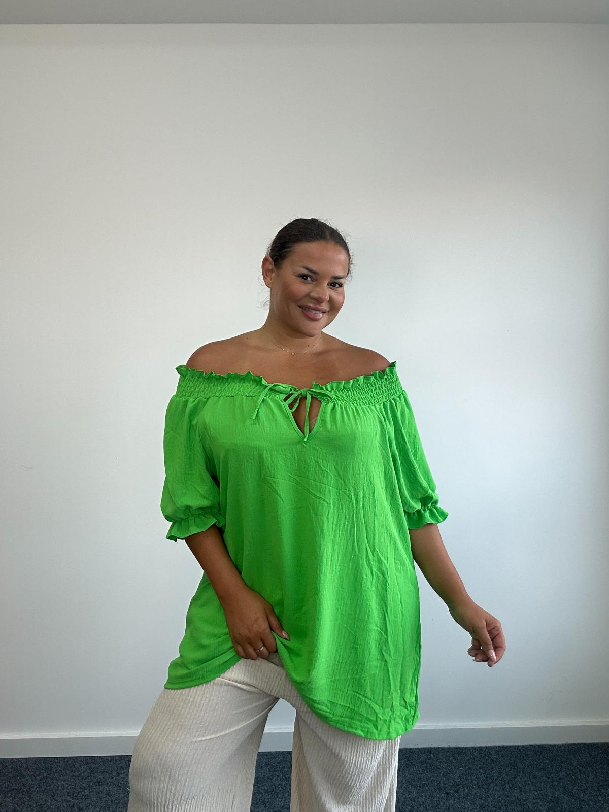 Curve Plus Size Green Bardot Off Shoulder Crinkle Top x 2, 3 & 5 Pack Options