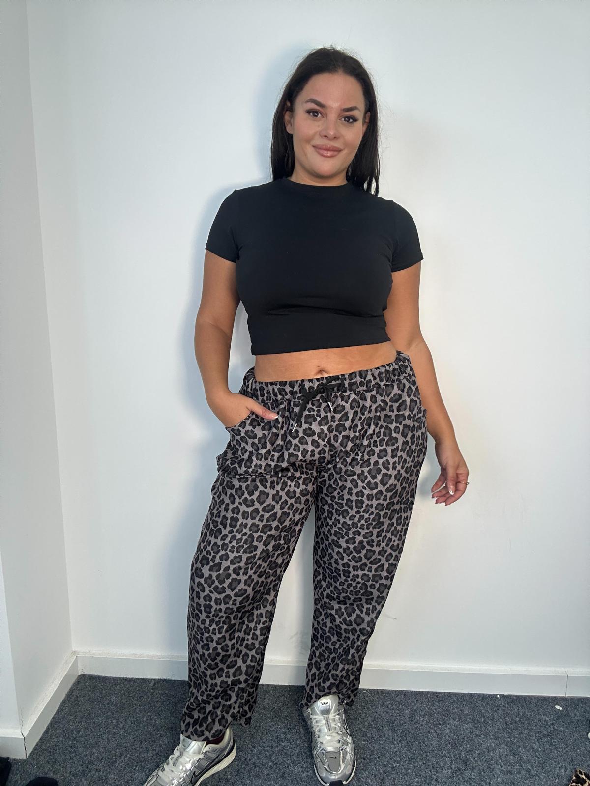 Curve Plus Size Grey Black Leopard Print Trousers with Pockets x 2, 3 & 5 Pack Options