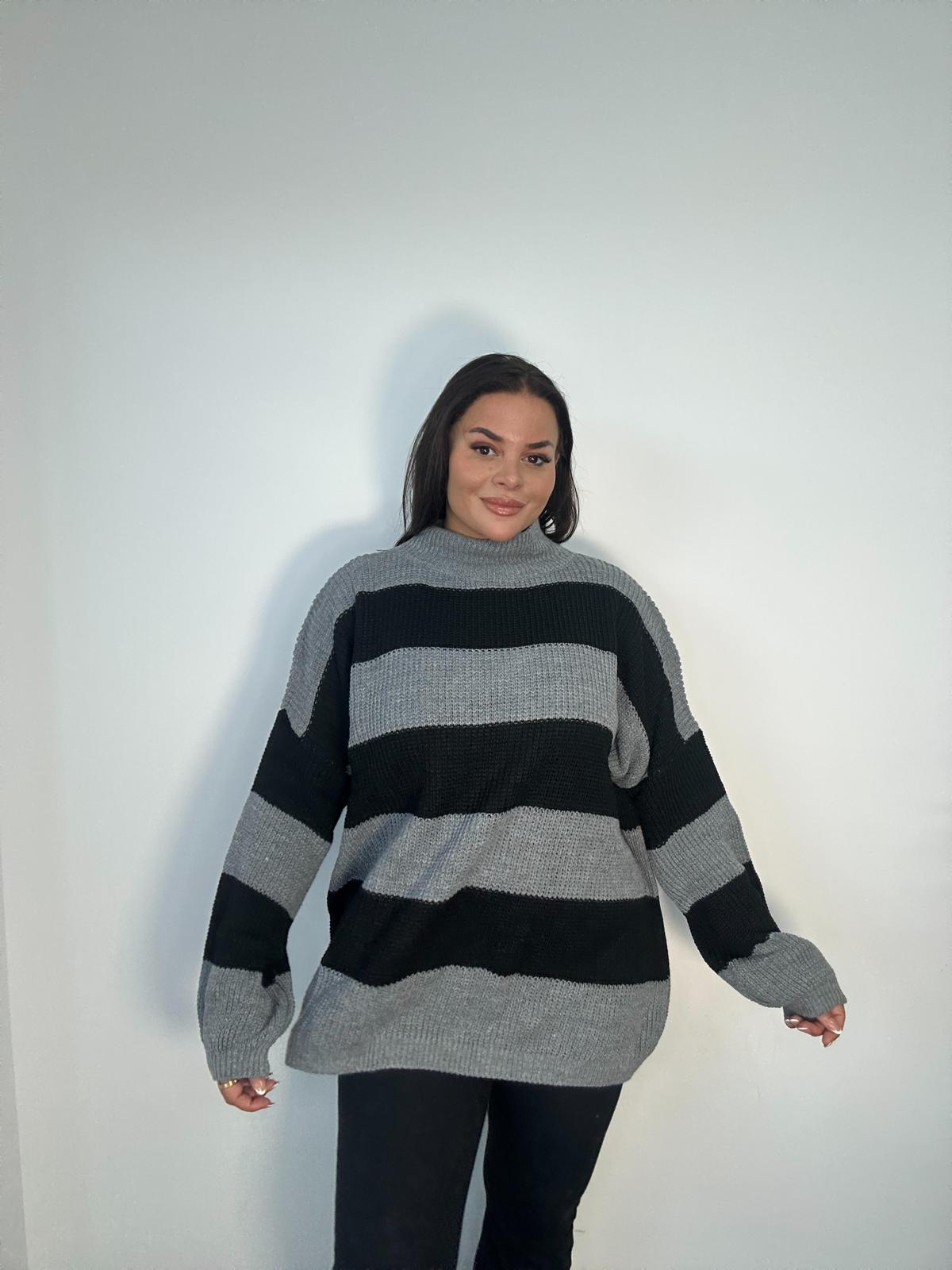 The Curve Cosy Striped Oversized Jumper is the perfect blend of comfort and style. Designed with wide monochrome stripes, this chunky knit jumper features a relaxed oversized fit, drop shoulders, and a high neckline for added warmth. Ideal for layering, it pairs effortlessly with jeans, leggings, or faux leather trousers. A must-have staple for plus-size women’s fashion collections that prioritise both cosiness and chic appeal.