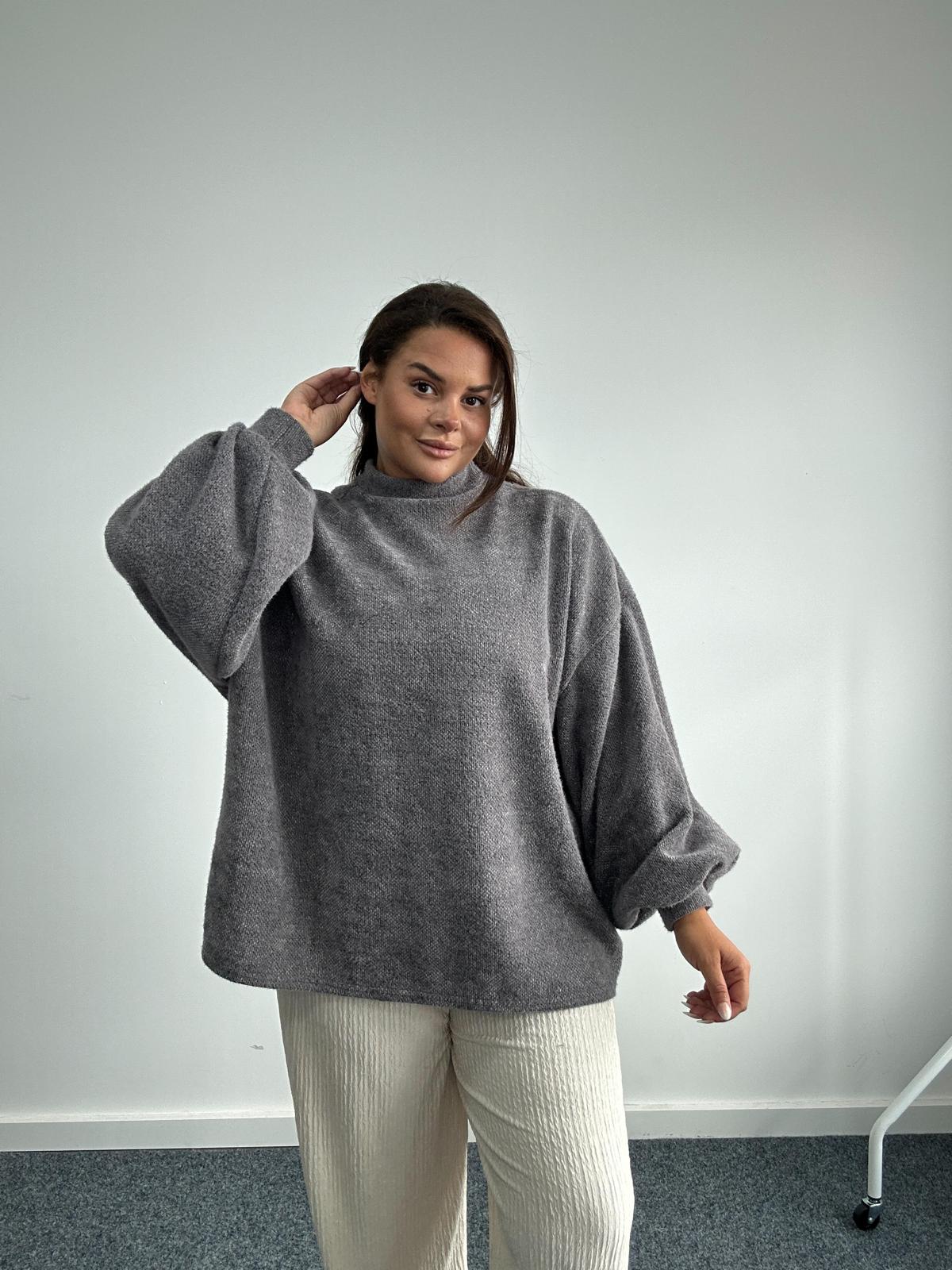 Introduce cosy sophistication into your wholesale plus size knitwear collection with this navy fluffy jumper. Designed in a relaxed oversized fit, this jumper features a high neckline and statement balloon sleeves, offering both comfort and a stylish silhouette. Crafted from a soft, textured knit, it’s the perfect layering piece for cooler weather. The colour makes it versatile for casual or smart-casual styling, a must-have for plus size retailers looking to stock trendy yet timeless knitwear.