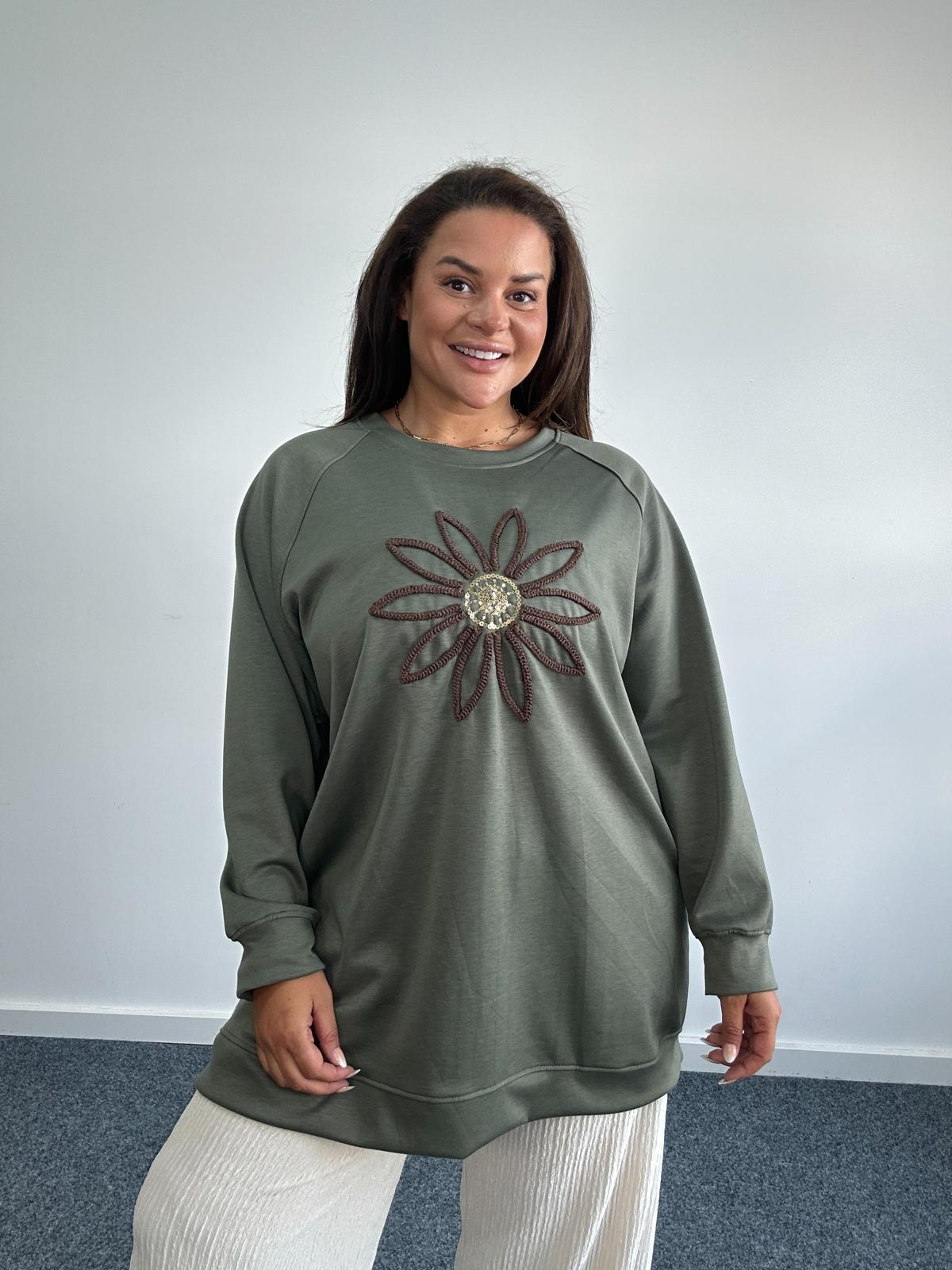 Curve Plus Size Khaki Longline Top with Floral Embellishment x 2, 3 & 5 Pack Options