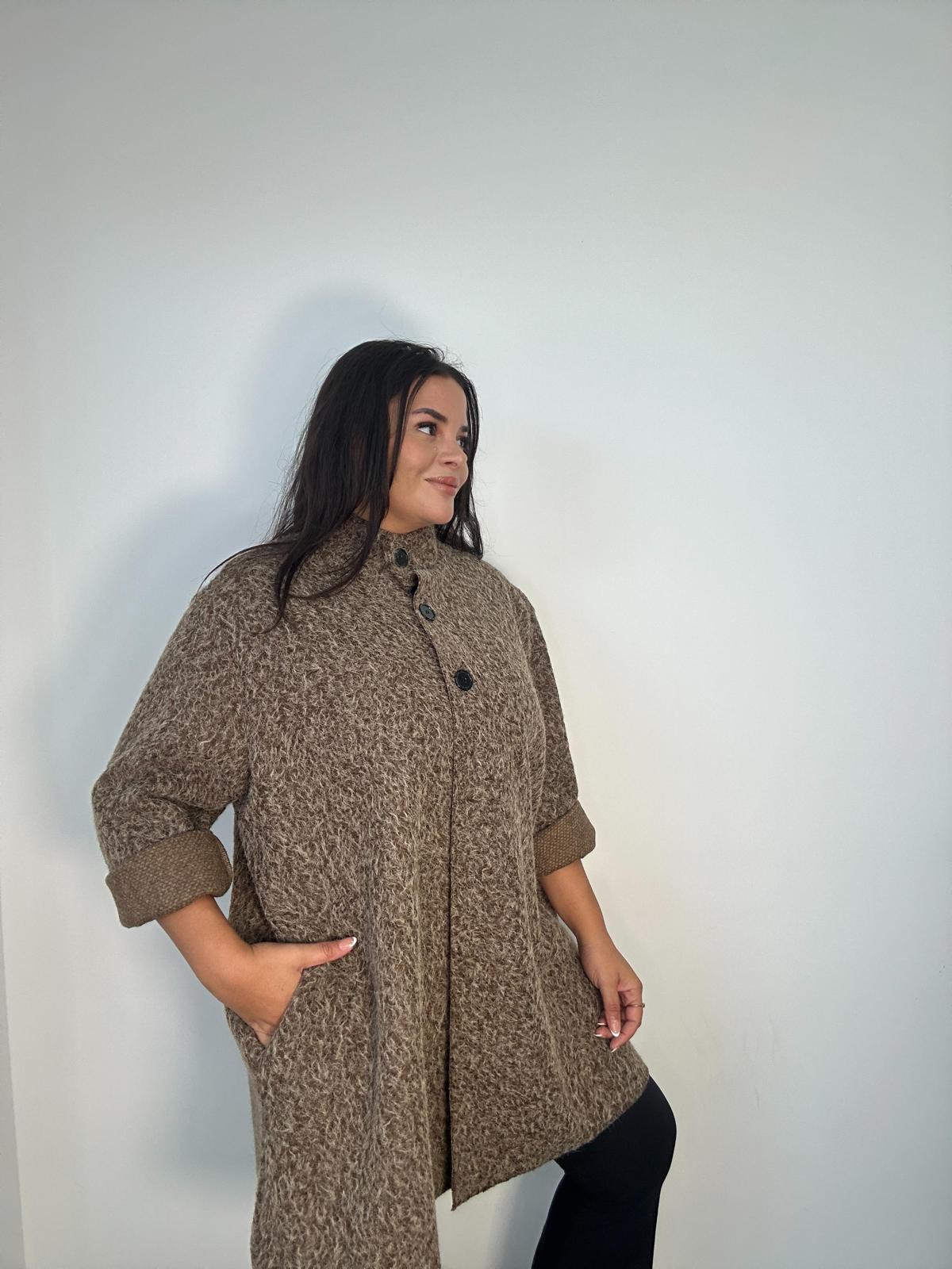 The Curve Textured Button-Front Coat is the perfect outerwear piece for effortless layering. Crafted in a soft, textured knit with a cosy feel, it features a high neckline, oversized buttons, and a relaxed longline fit that flatters curves. Rolled sleeves and side pockets add both practicality and style, making this coat an essential choice for smart-casual looks. A versatile plus-size staple for transitional and winter collections.