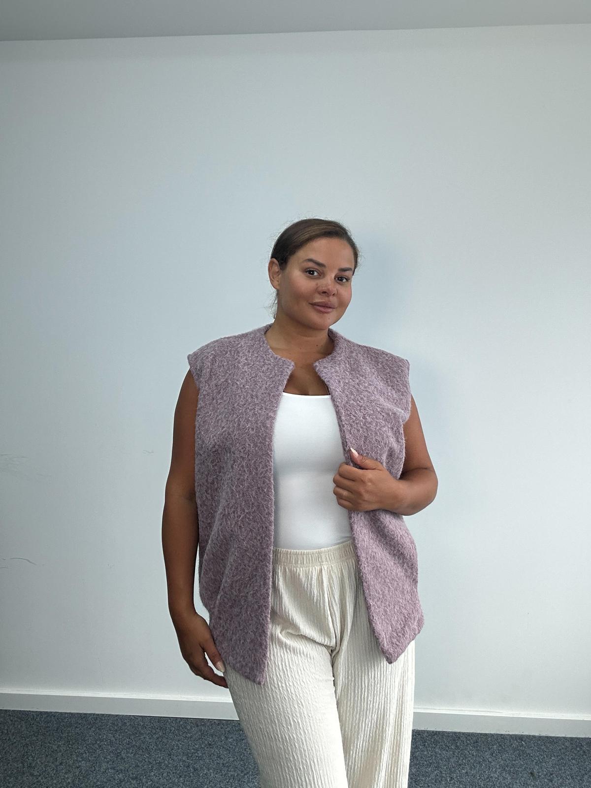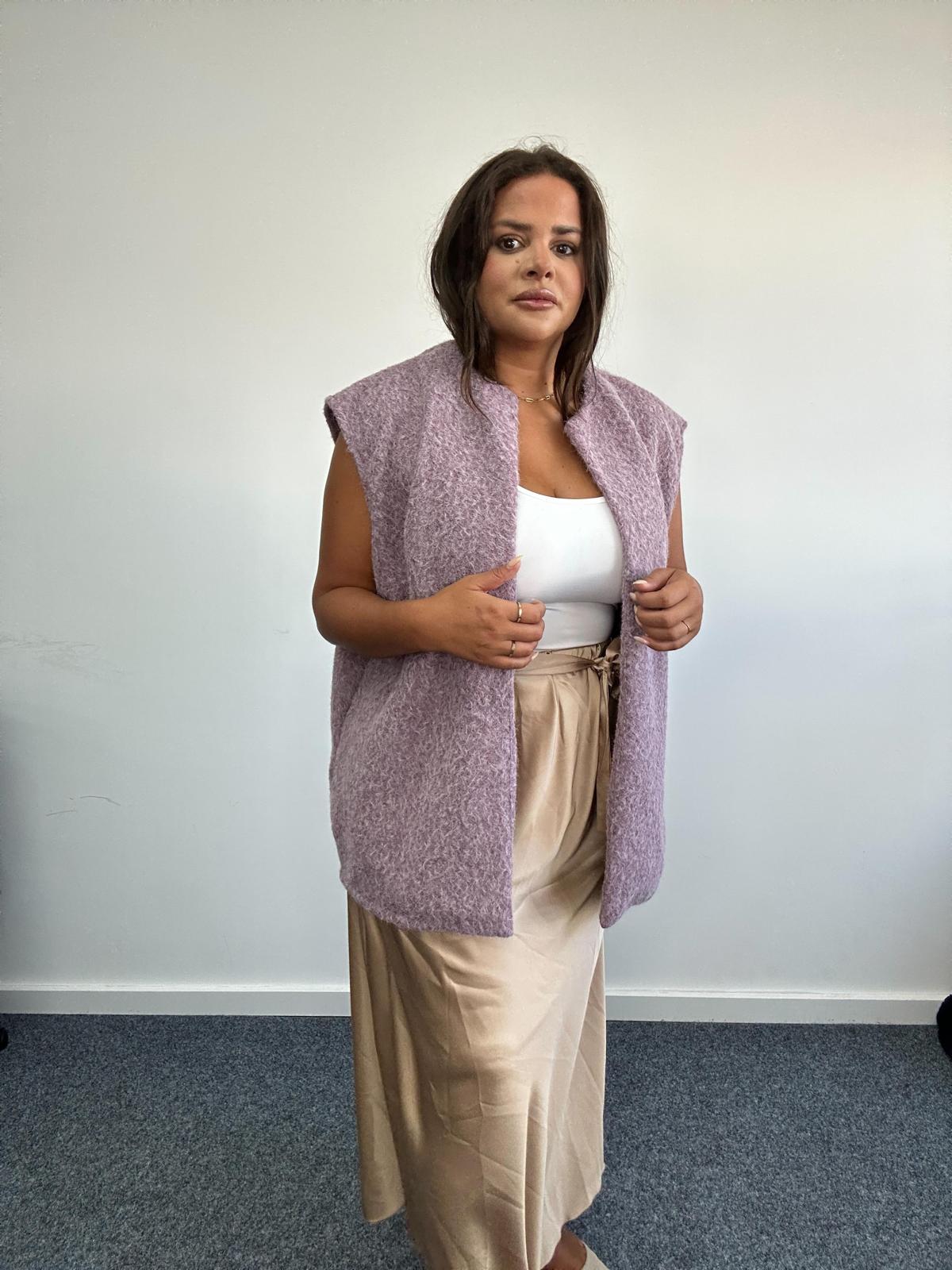 Wrap up in effortless style with this Curve Plus Size Lilac Brushed Knit Gilet, the perfect layering piece for every season. Crafted from a soft brushed knit fabric with a cozy textured finish, this sleeveless gilet offers both comfort and chic appeal. Featuring an open front and a relaxed fit, it’s easy to throw over tops, blouses, or dresses. The soft lilac shade adds a feminine touch, making it a versatile must-have for stylish layering.
