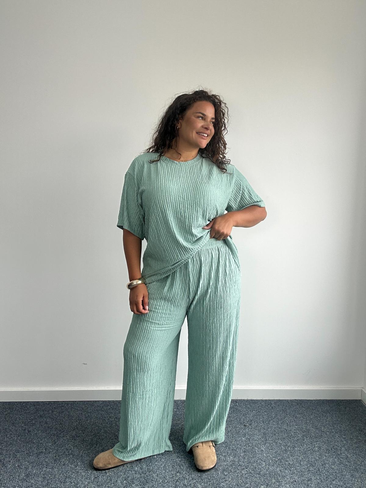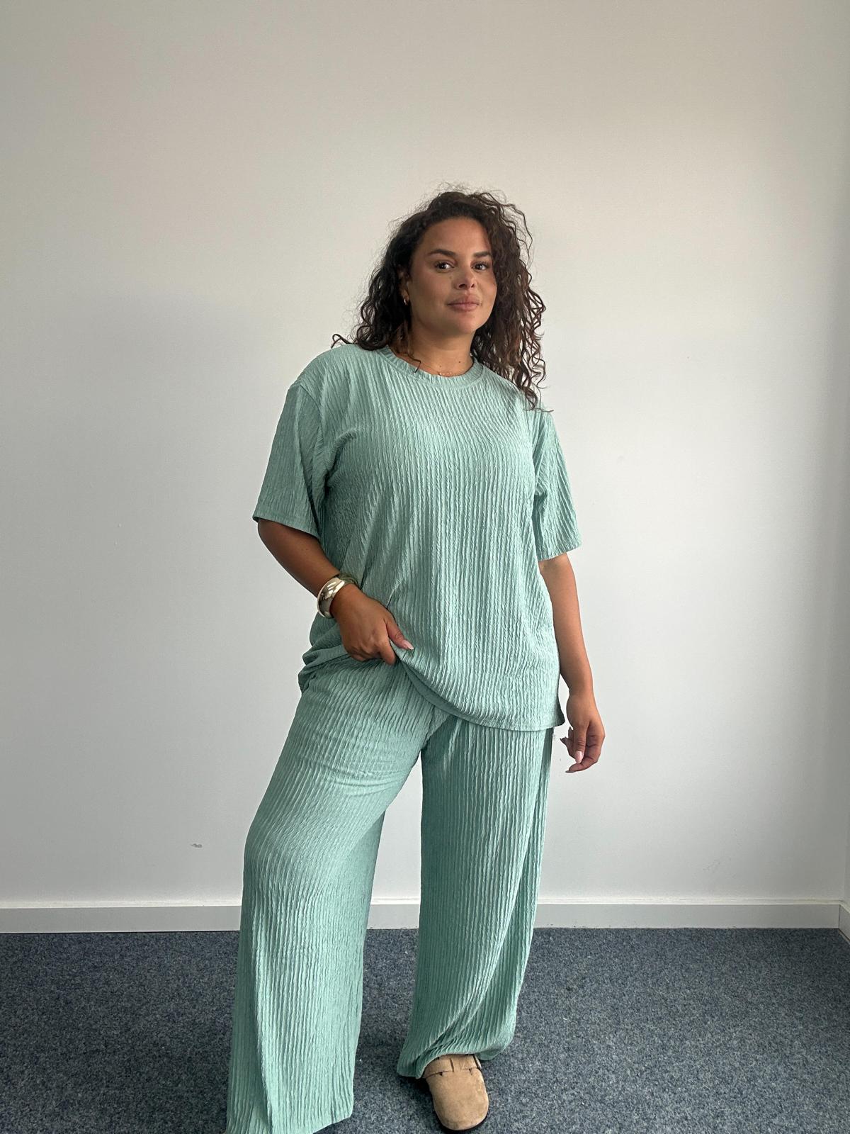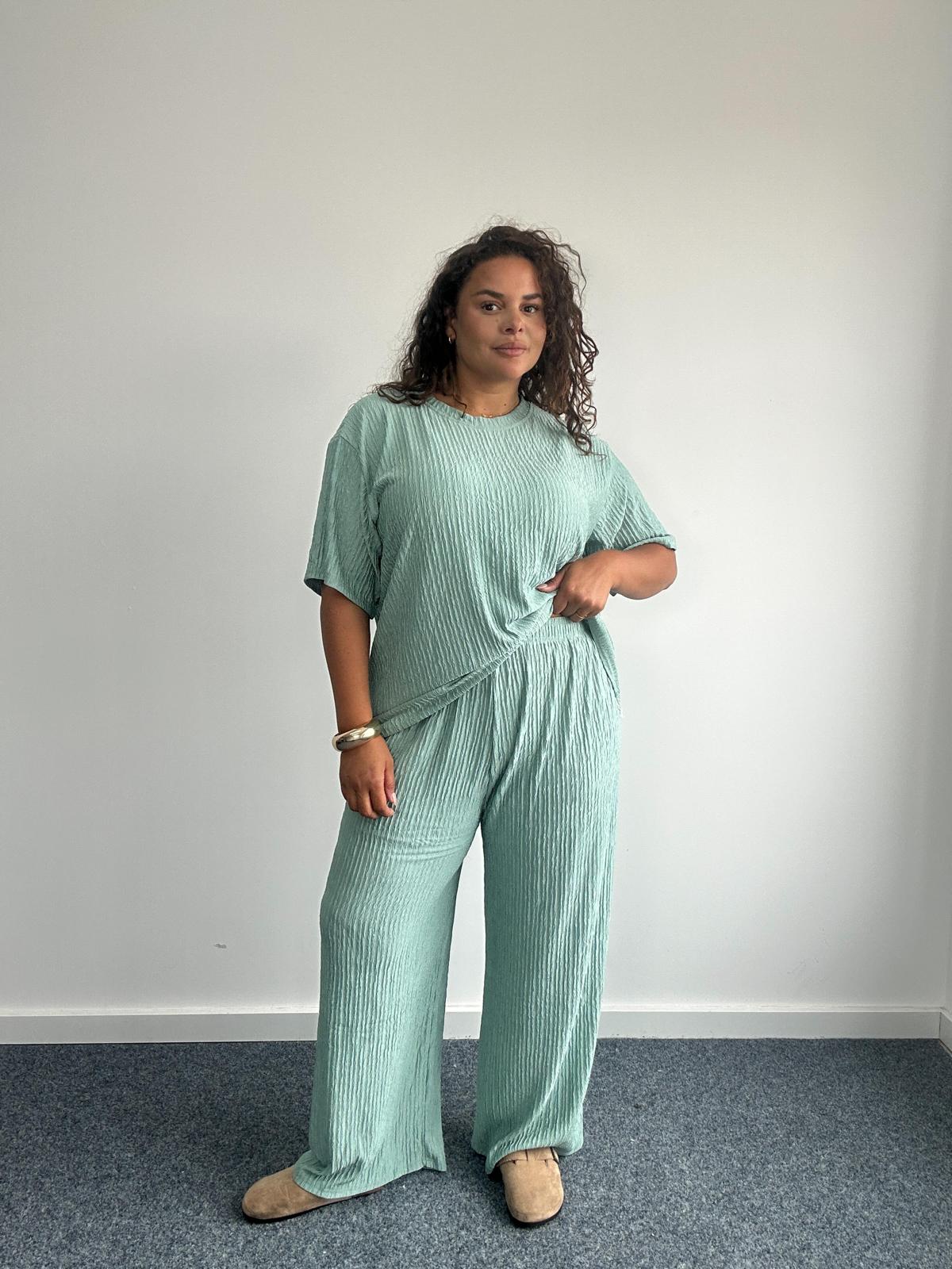 Add this must have Curve Plus Size Crinkle Co-Ord Set to your wholesale collection, an easy wear, high-demand style perfect for lounging or off-duty dressing. This two-piece set features an oversized short-sleeve top and matching wide-leg trousers, both crafted from a textured crinkle fabric that offers comfort, breathability, and modern appeal. Ideal for boutiques and retailers looking to tap into relaxed fits with a fashion-forward edge for their curve and plus size clientele.