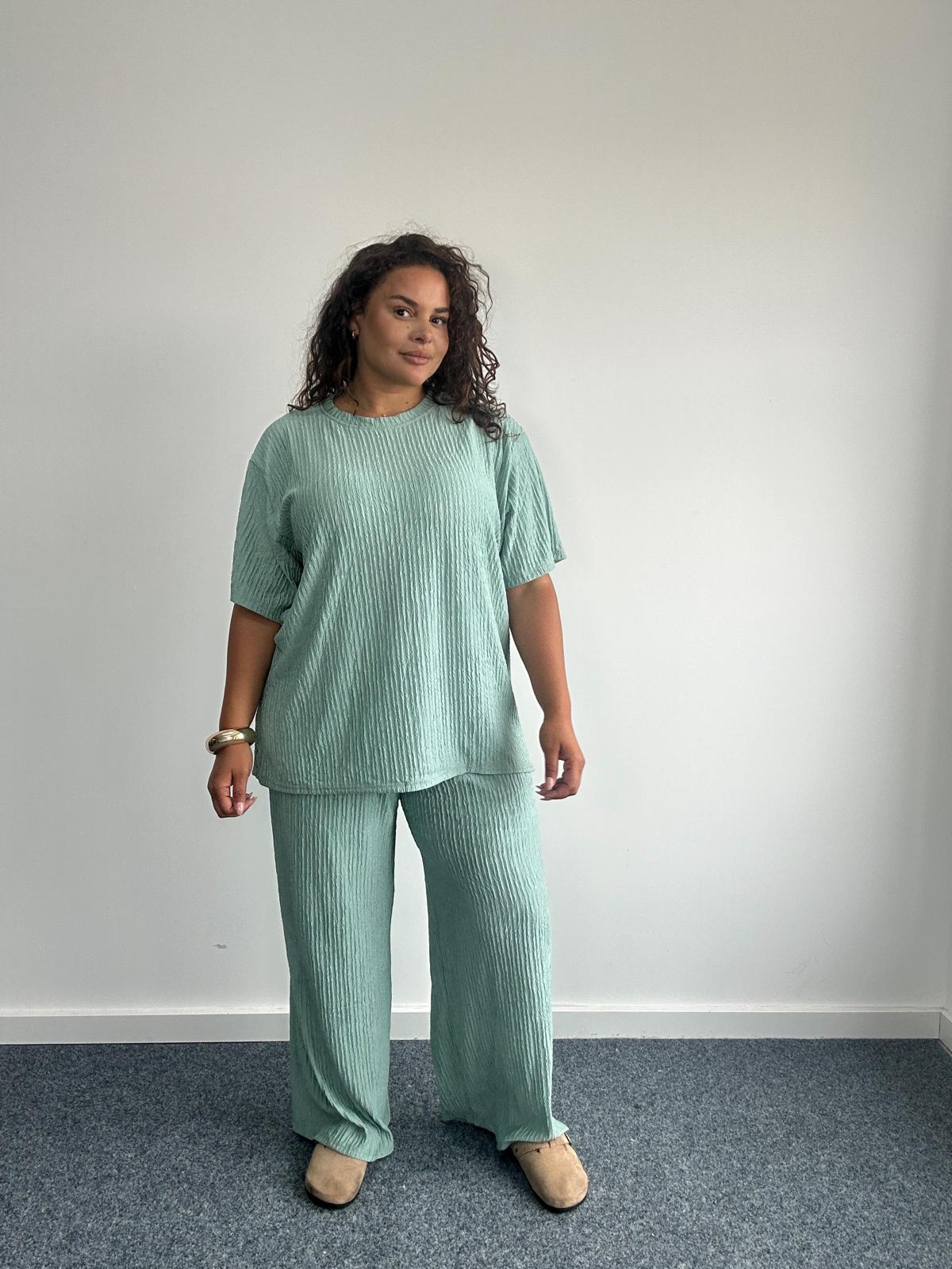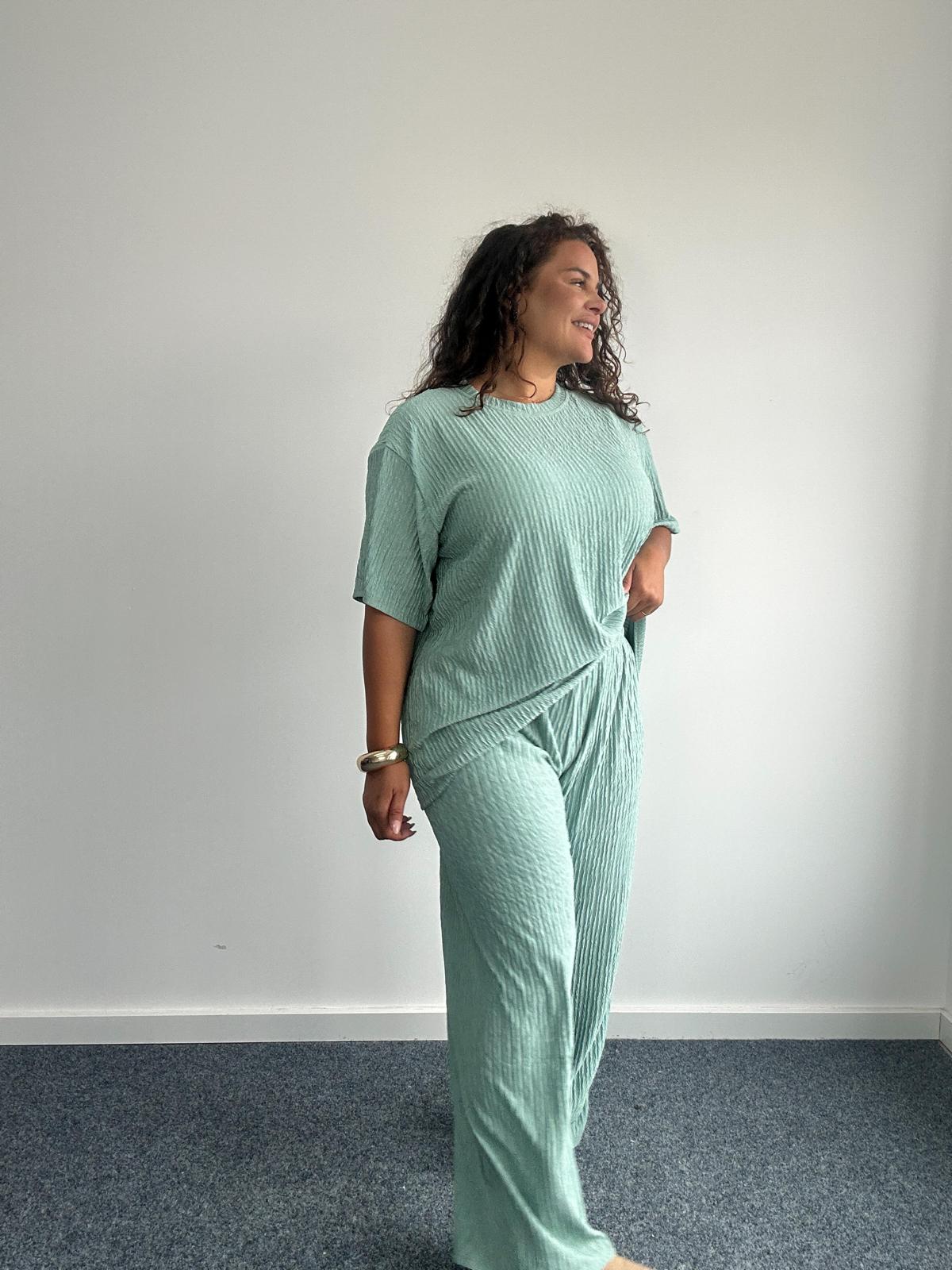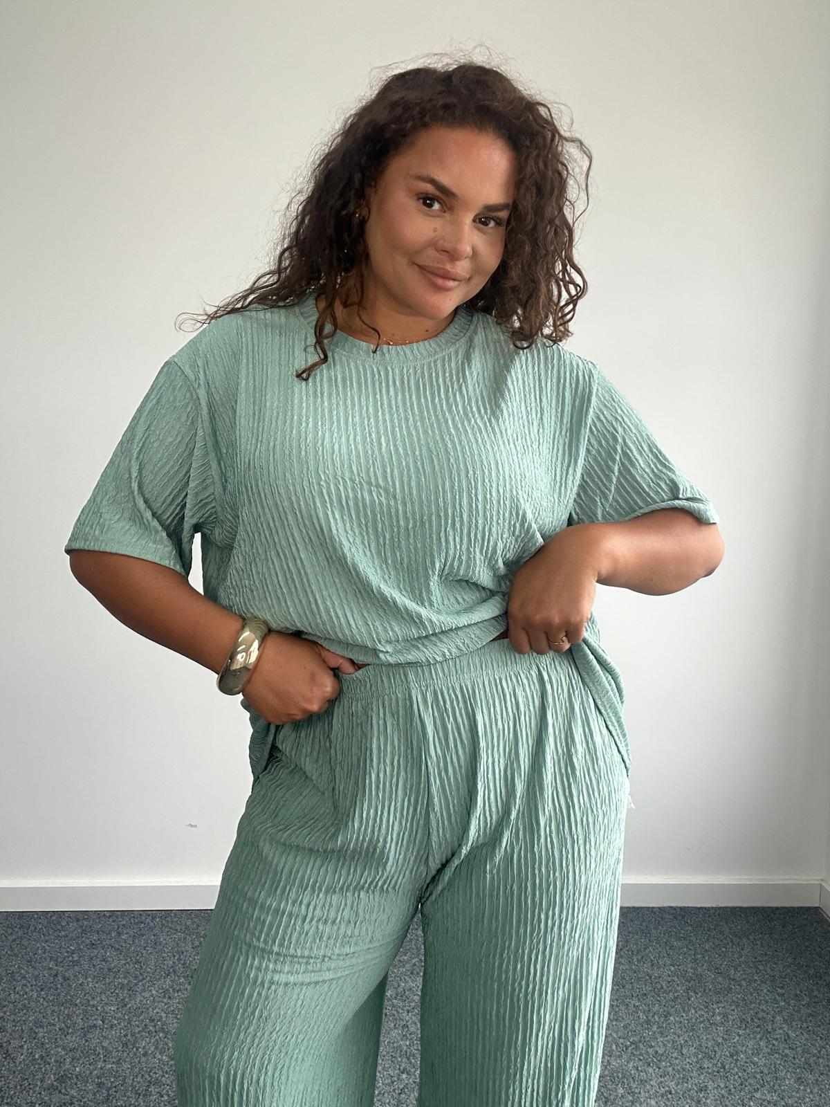 Add this must have Curve Plus Size Crinkle Co-Ord Set to your wholesale collection, an easy wear, high-demand style perfect for lounging or off-duty dressing. This two-piece set features an oversized short-sleeve top and matching wide-leg trousers, both crafted from a textured crinkle fabric that offers comfort, breathability, and modern appeal. Ideal for boutiques and retailers looking to tap into relaxed fits with a fashion-forward edge for their curve and plus size clientele.