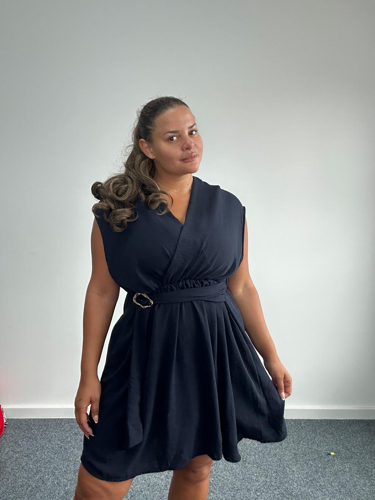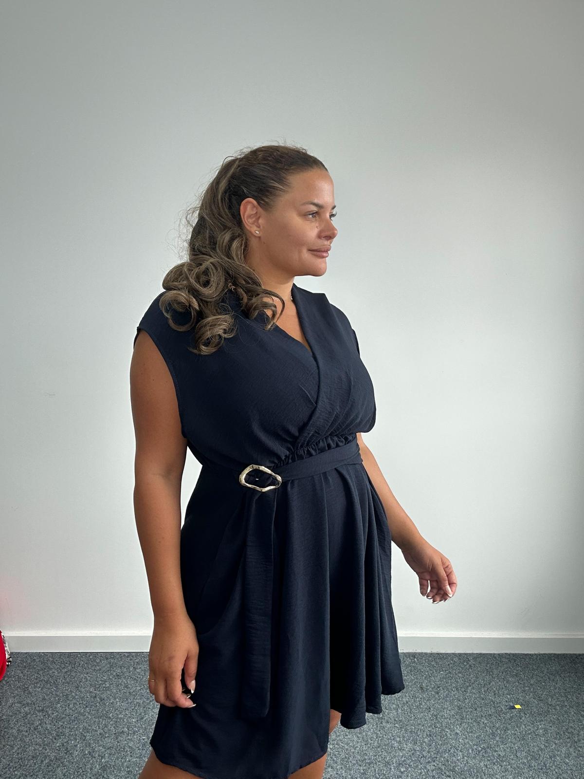 Curve Plus Size Navy Belted Buckle Detail Wrap Look Mini Dress with Pockets x 2, 3 & 5 Pack Options