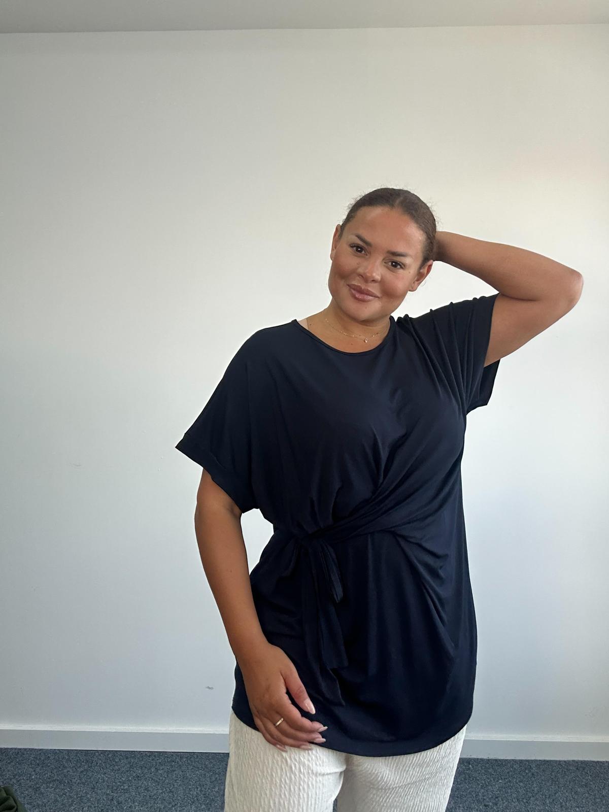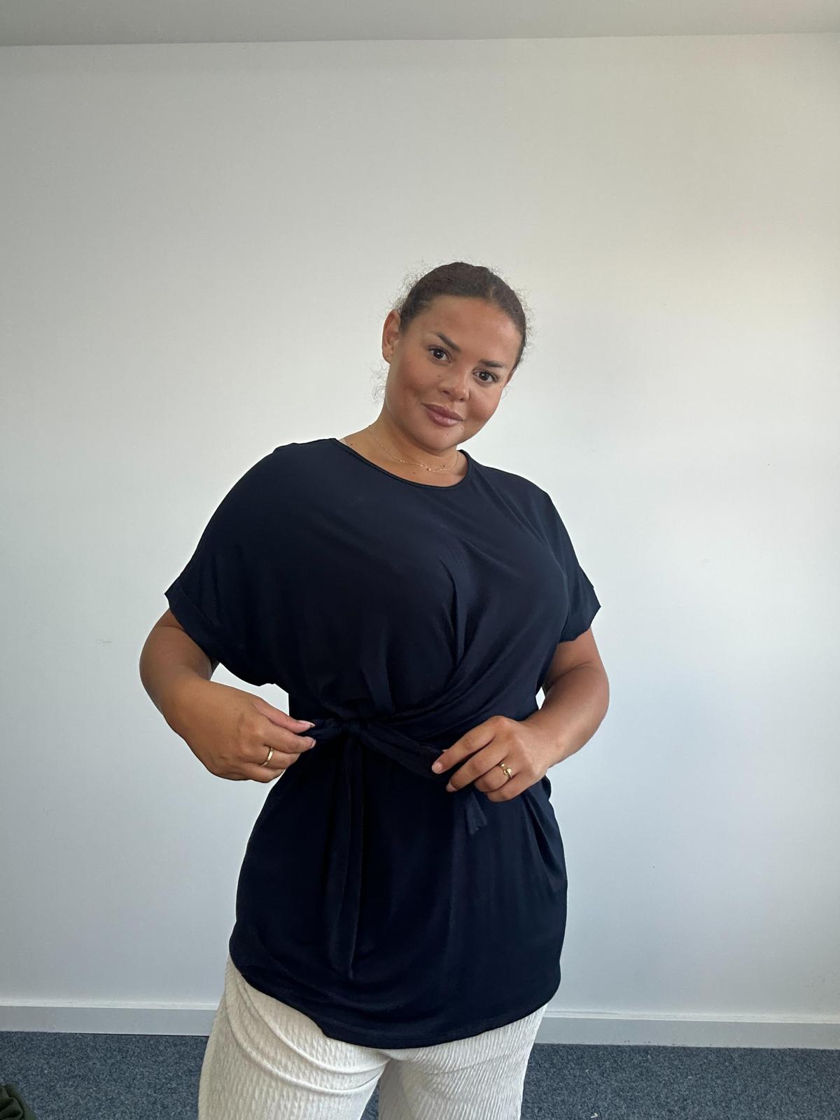 Elevate your plus-size collection with this effortlessly chic tie-waist top, crafted to combine comfort with subtle sophistication. Featuring a relaxed silhouette, this short-sleeve top is designed with a flattering waist tie that enhances natural curves while providing versatile styling options. Made from a soft and breathable fabric, it’s perfect for casual daywear, office layering, or relaxed evening looks.