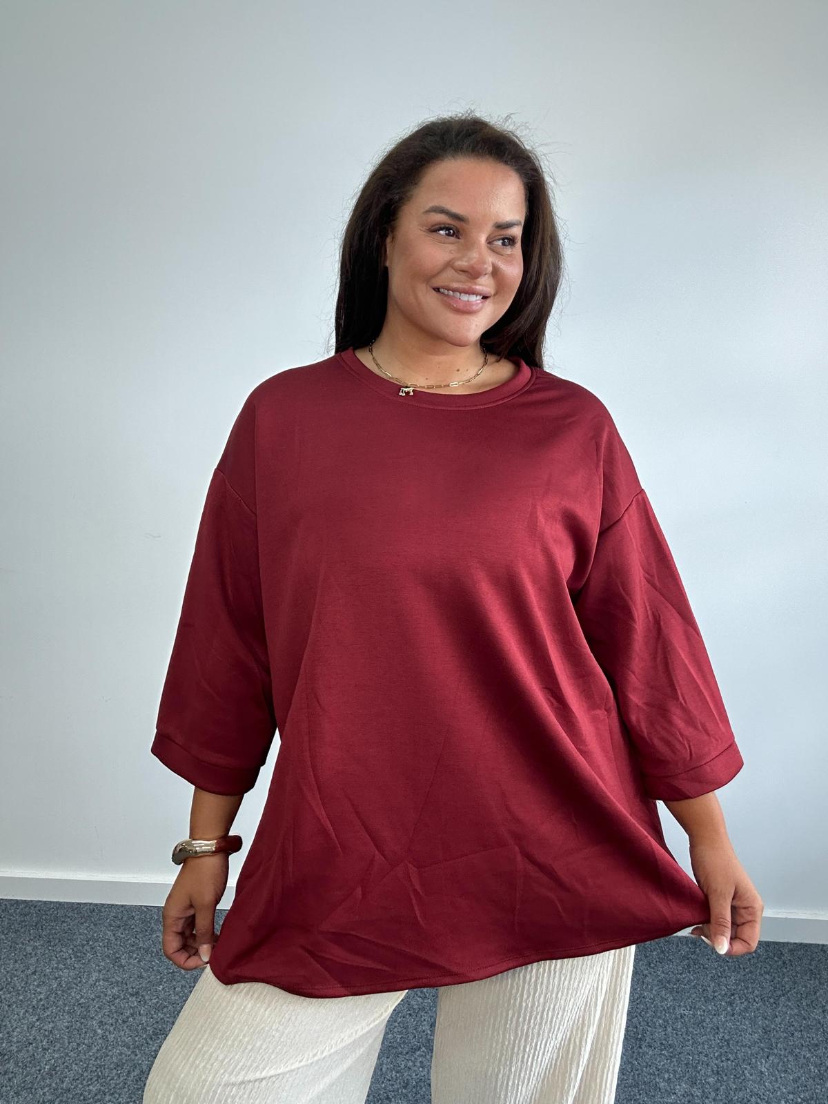 Introduce effortless chic to your wholesale plus size collection with this oversized top. Designed with a relaxed fit, this curve friendly style features 3/4 length sleeves, a round neckline, and a soft fabric that drapes beautifully for all day comfort. Perfect for casual wear, lounging, or layering, this versatile neutral piece can be styled up with trousers or kept laid back with leggings. A wardrobe staple your plus size customers will love for its simplicity and comfort.