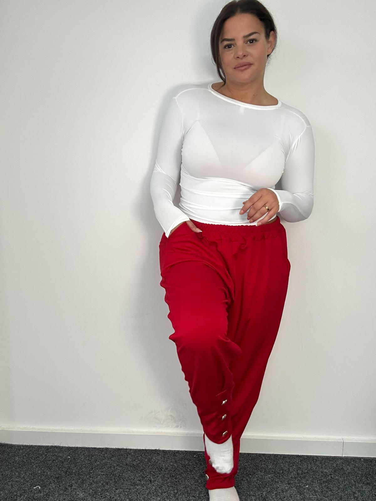 Curve Plus Size Red High Waist Jogger Pants with Button Hem x 2, 3 & 5 Pack Options