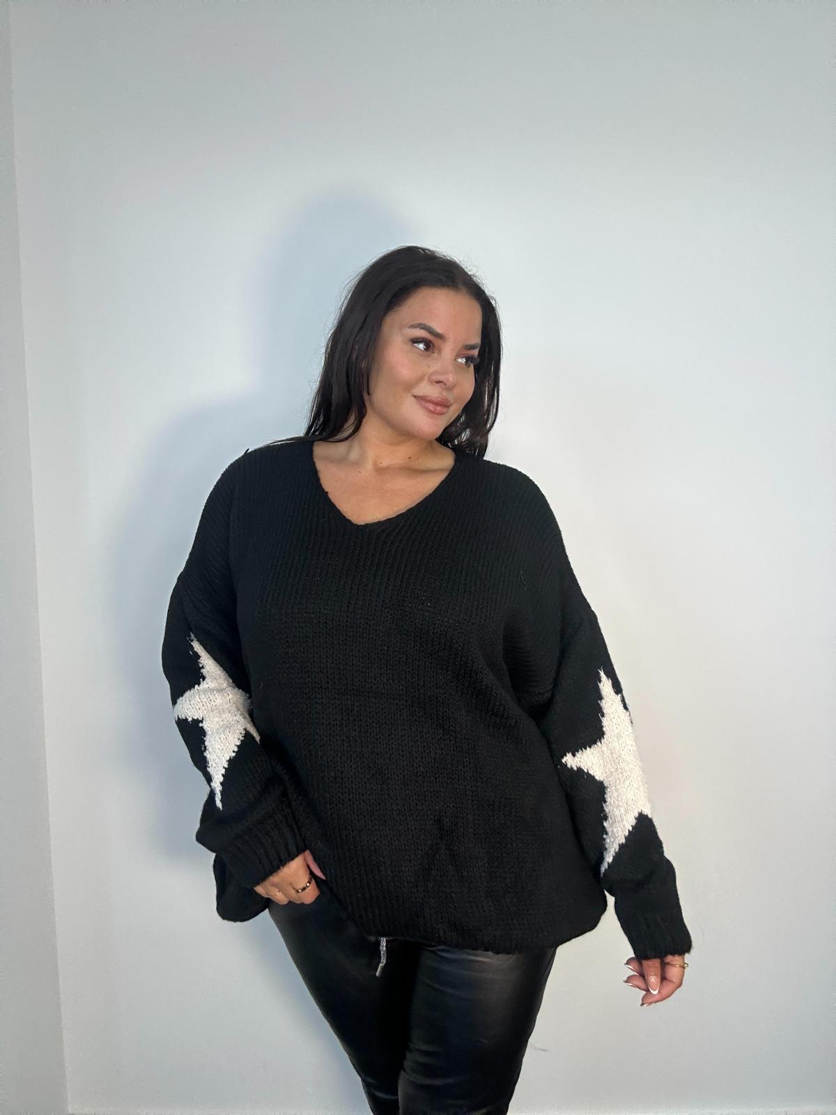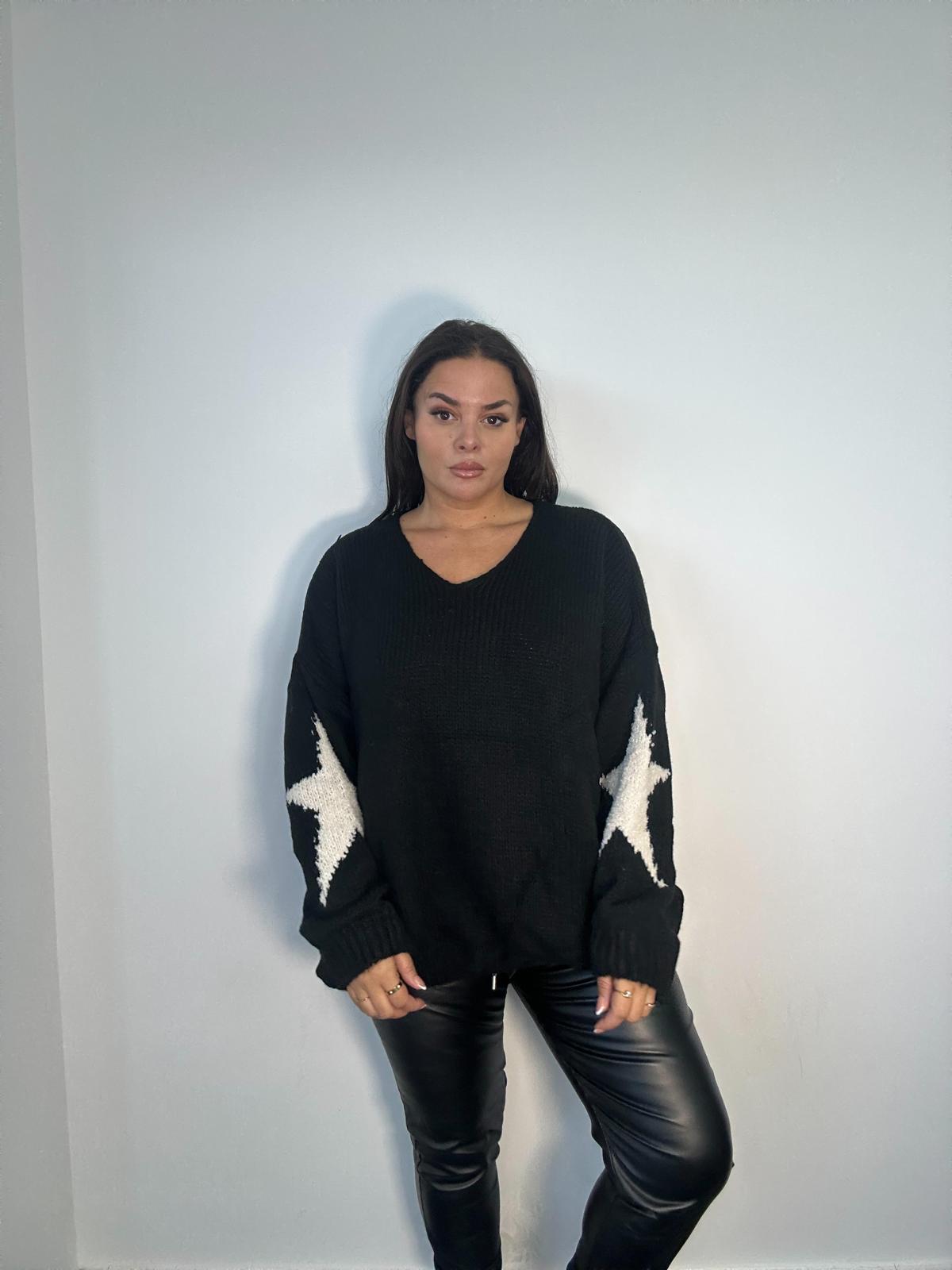 Curve Plus Size Star Sleeve Black Knit Oversized Jumper x 2, 3 & 5 Pack Options