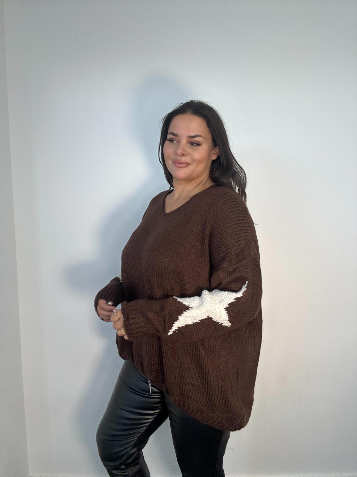 Curve Plus Size Star Sleeve Brown Knit Oversized Jumper x 2, 3 & 5 Pack Options