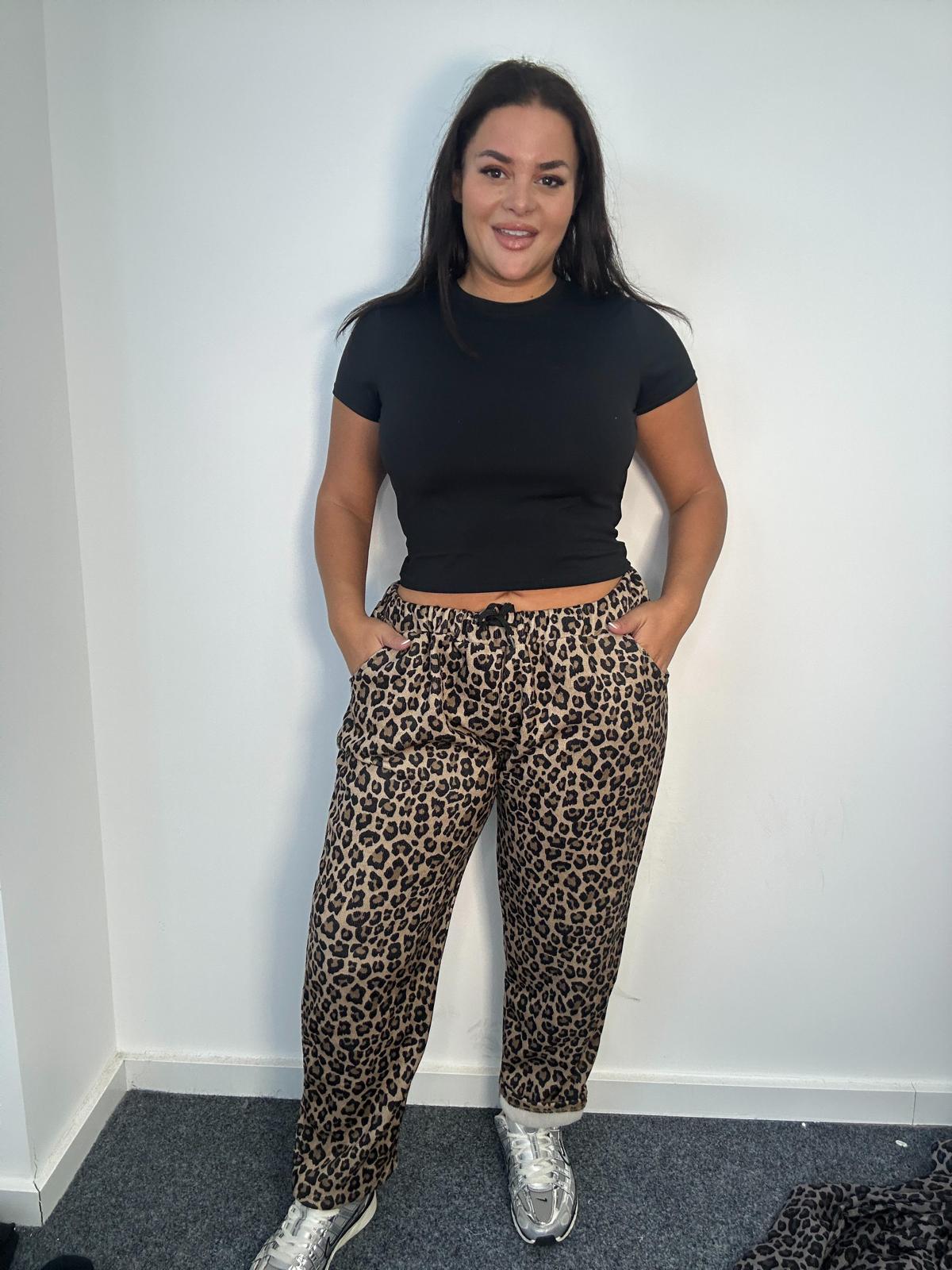 Curve Plus Size Tan Black Leopard Print Trousers with Pockets x 2, 3 & 5 Pack Options