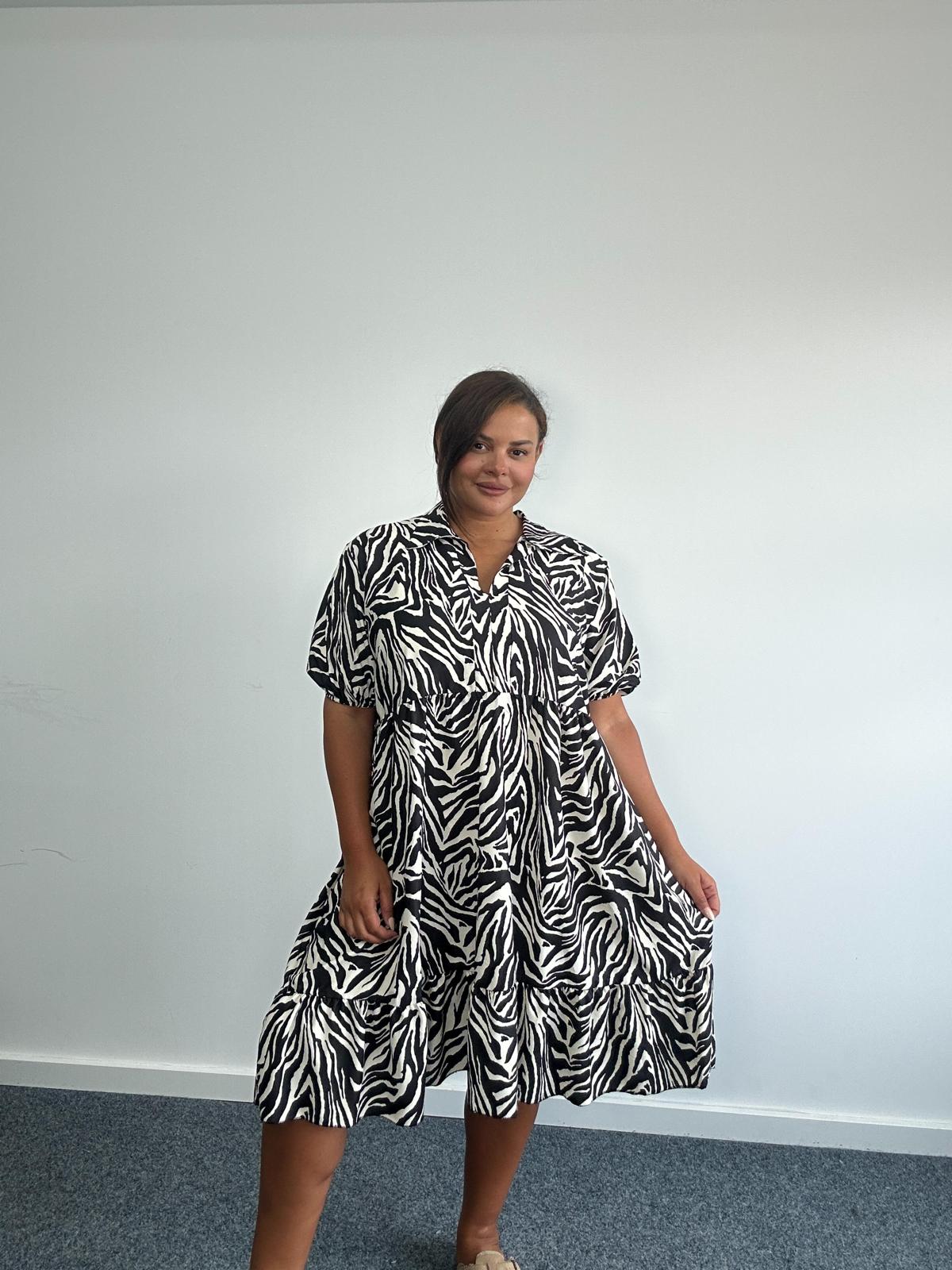 Curve Plus Size Zebra Print Tiered V Neck Midi Dress x 2, 3 & 5 Pack Options