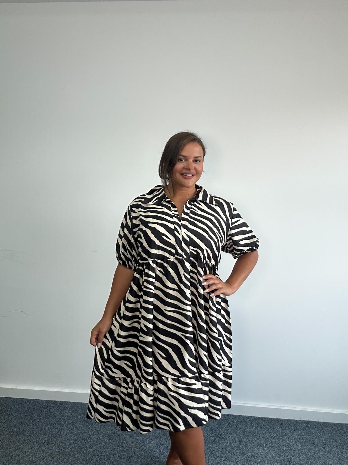 Bring bold style to your wholesale collection with this Curve Plus Size Zebra Print Midi Dress. Featuring a relaxed fit with tiered layers, short sleeves, and a v-neckline, this statement piece combines comfort with effortless style. Designed for curvy women, it’s a versatile wholesale dress perfect for casual wear, holidays, or standout everyday looks.