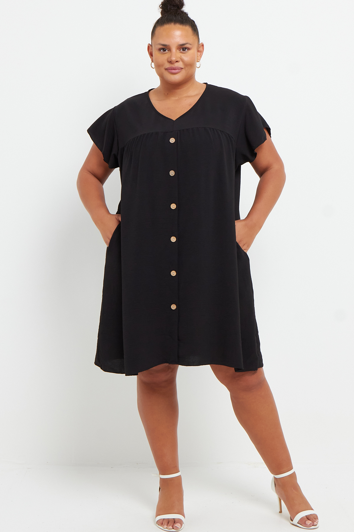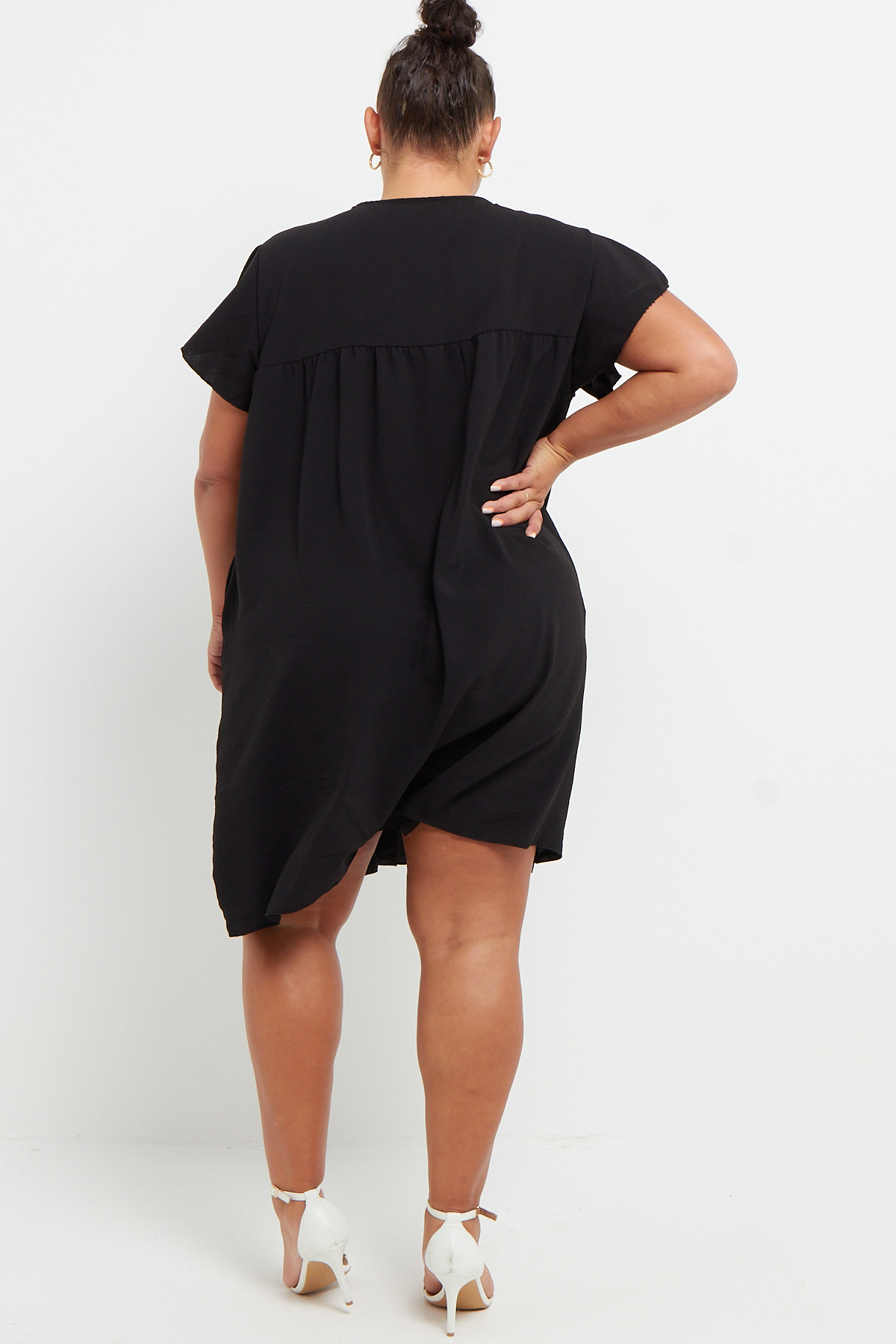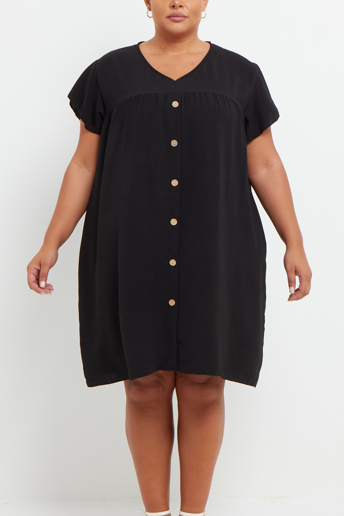 One Size Black Button Through Detail Short Sleeve Mini Dress With Pockets x 5