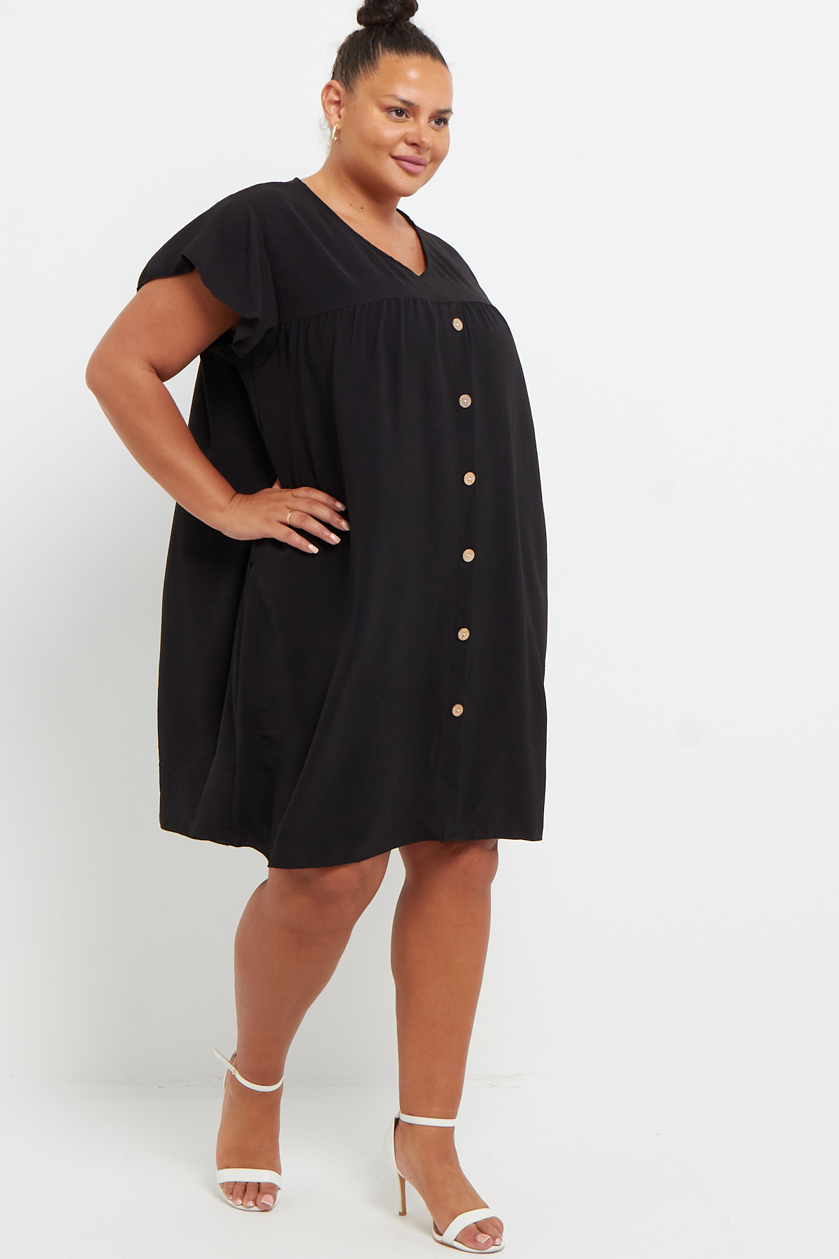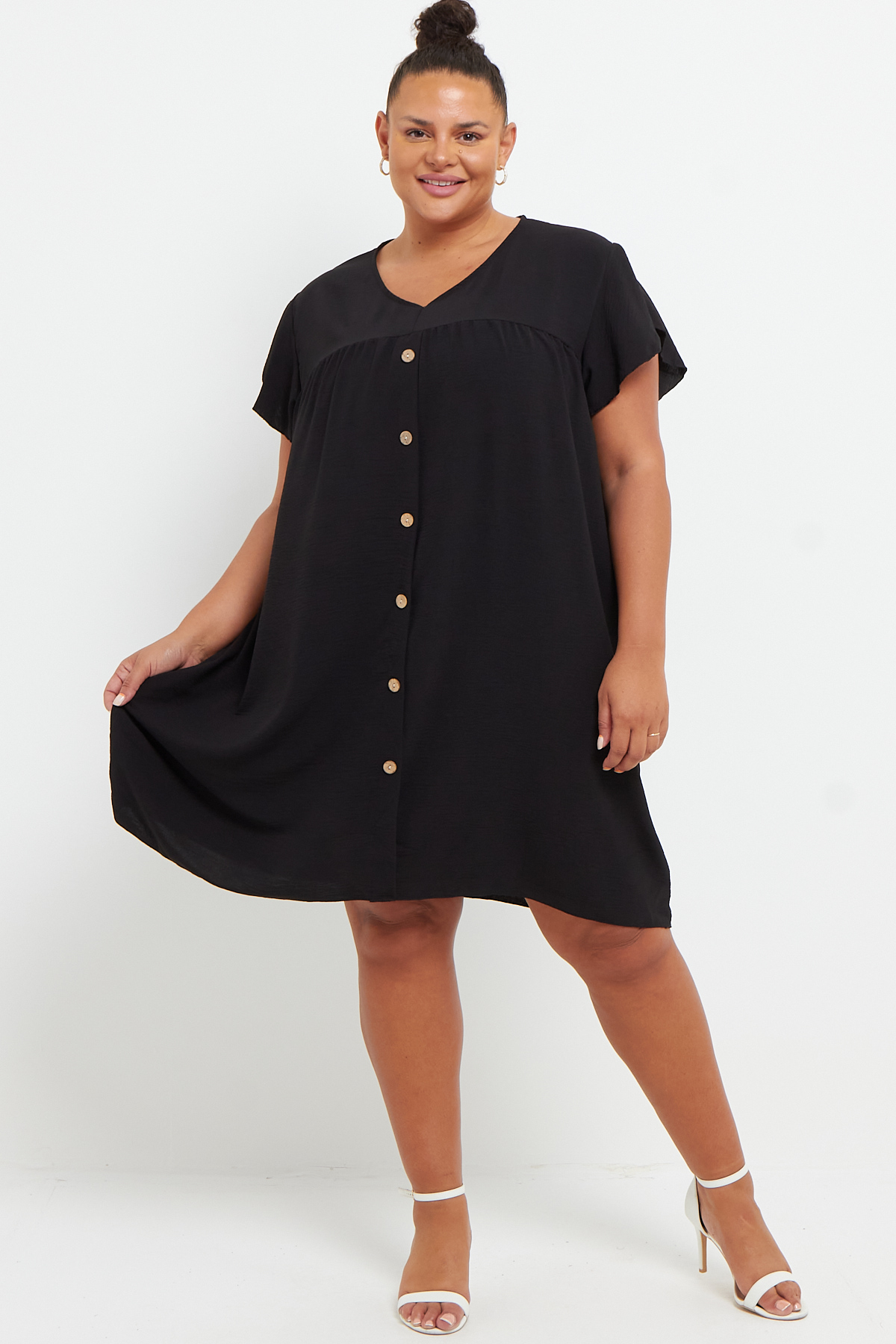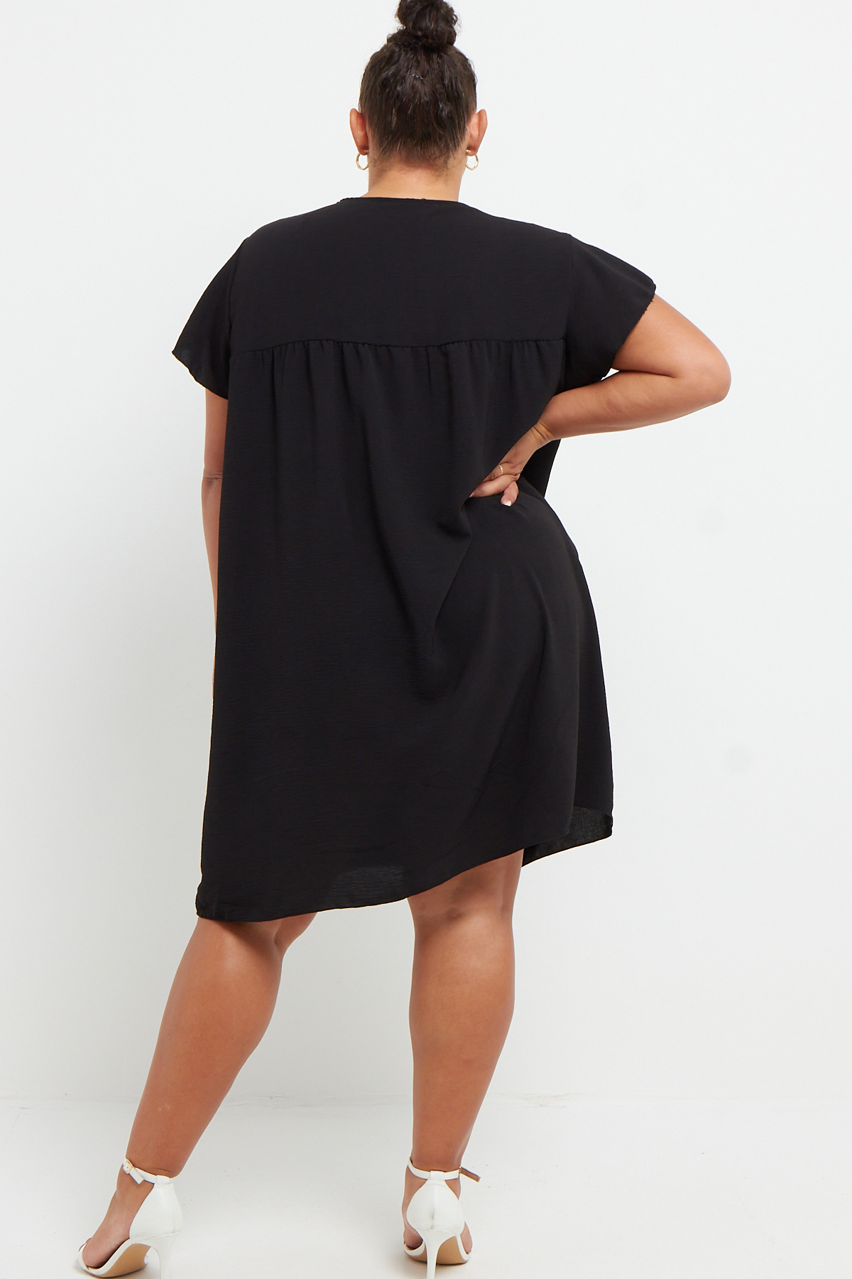 One Size Black Button Through Detail Short Sleeve Mini Dress With Pockets x 5