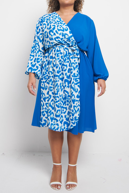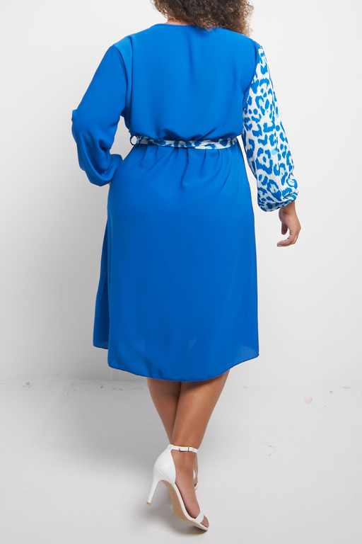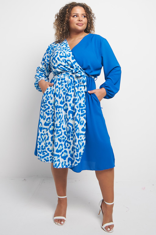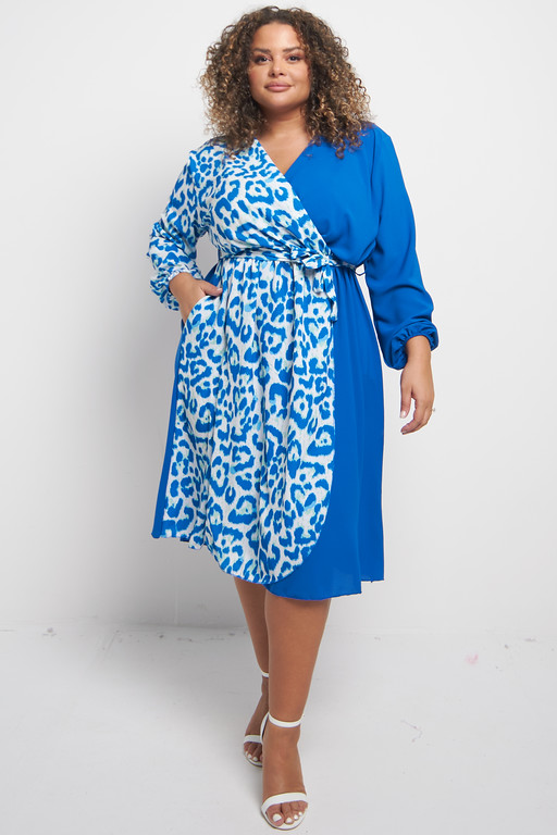 One Size Blue Half animal wrap style midi dress with pockets x 5