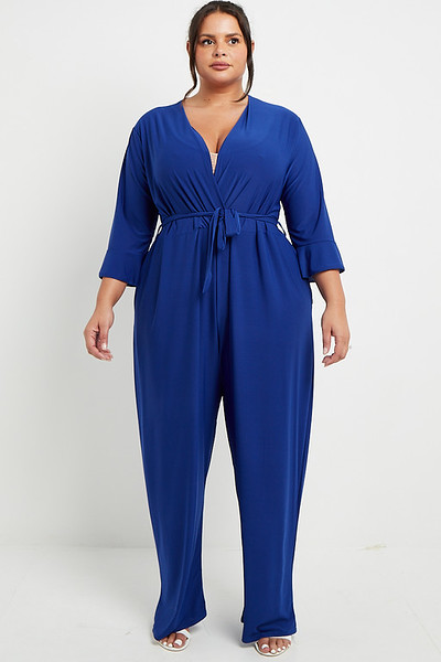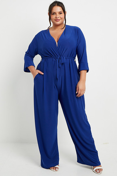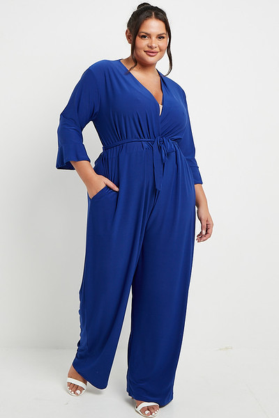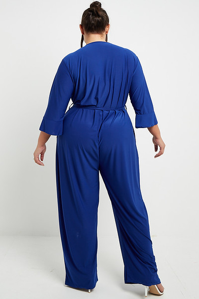 One Size Dark Blue V Neck Wrap Frilly 3/4 Sleeved Jumpsuit With Pockets x 5