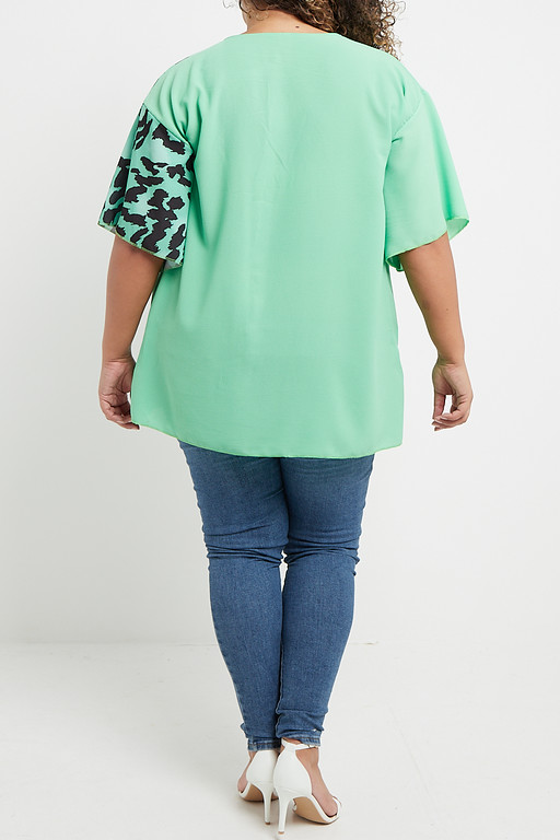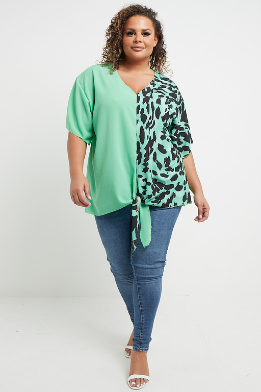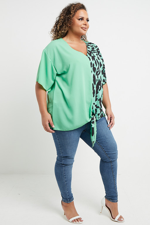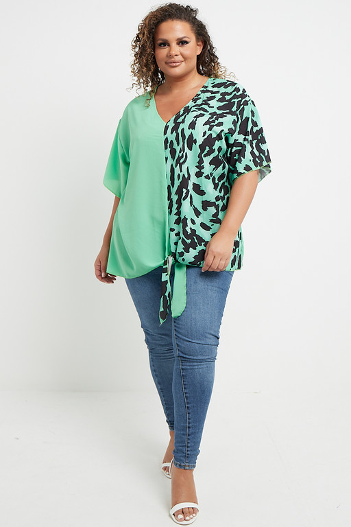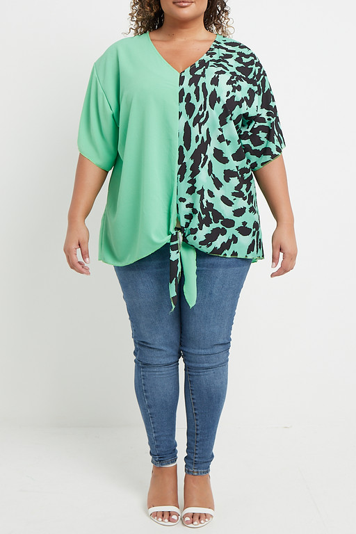 One Size Green Large Animal Print Short Sleeve V Neck Tie Hemline Printed Blouse Top x 5