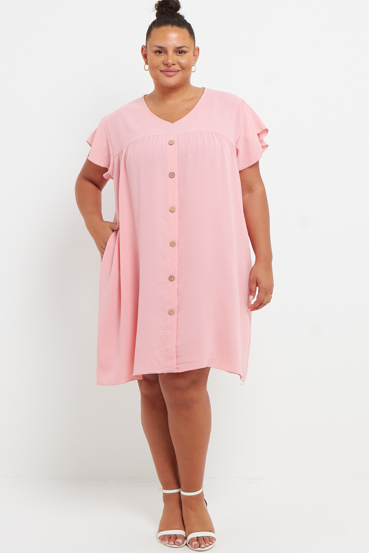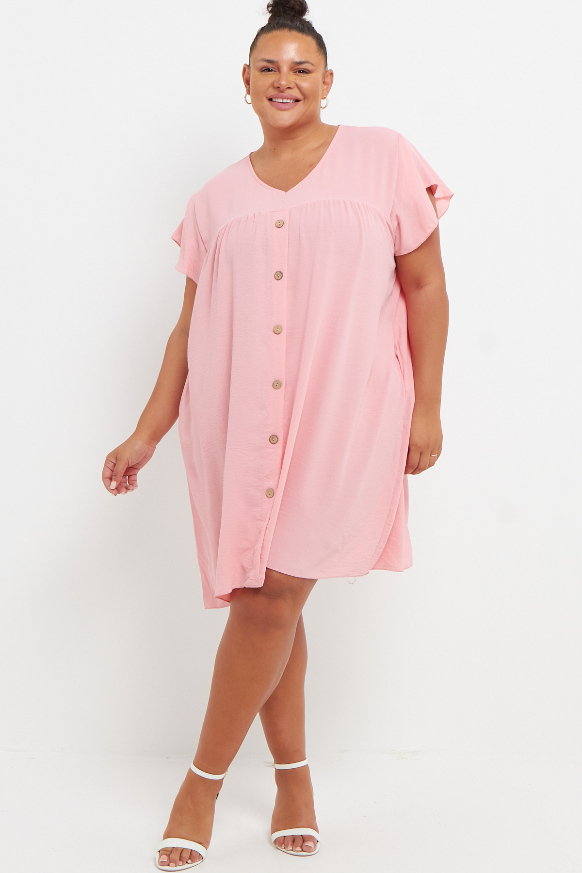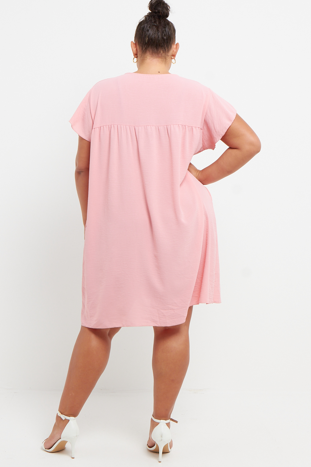 One Size Light Pink Button Through Detail Short Sleeve Mini Dress With Pockets x 5