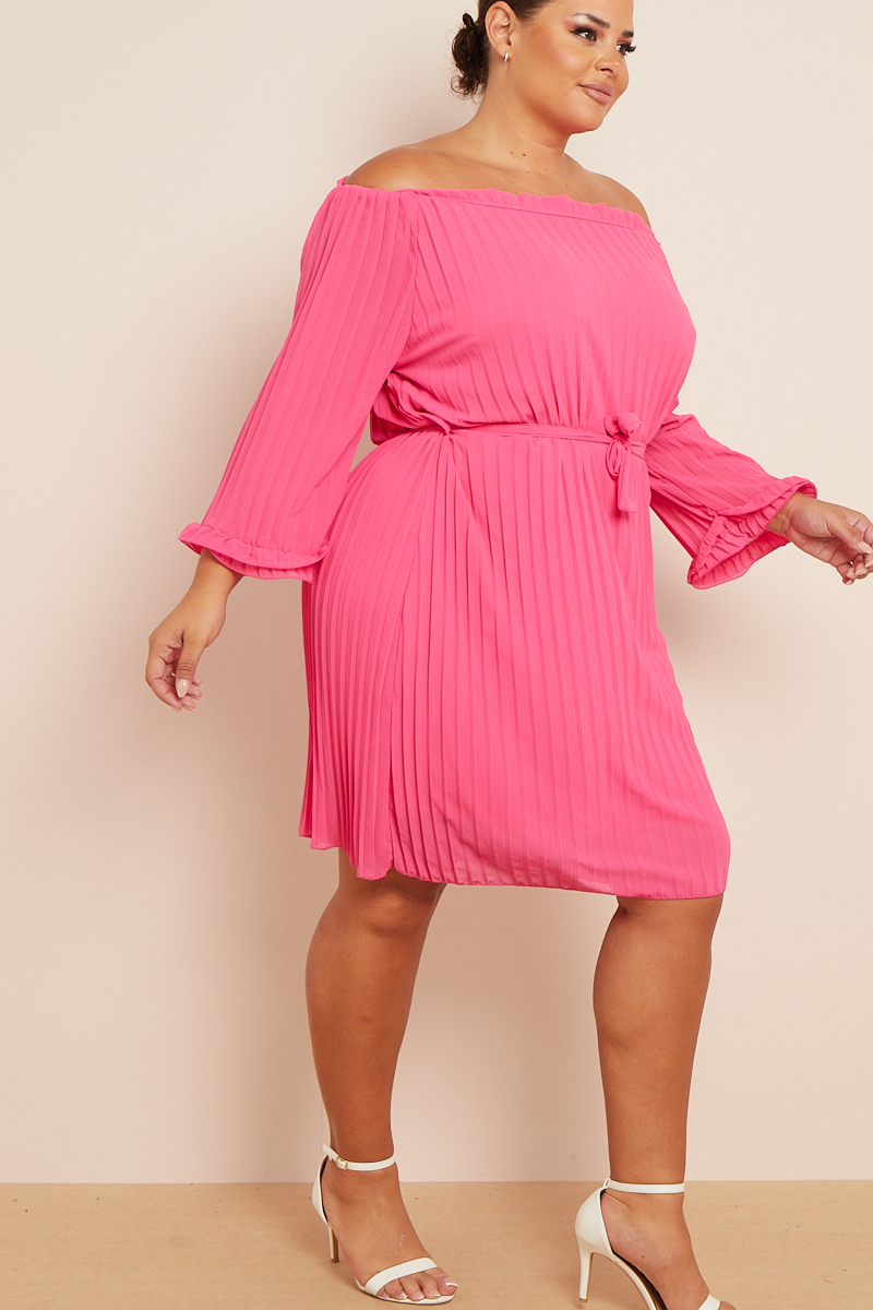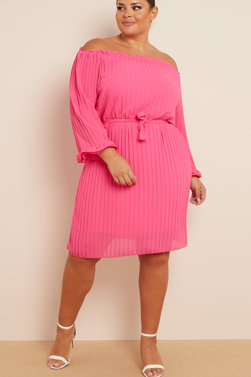 One Size Pink Bardot Pleated Long Sleeve Tie Waist Dress x 5