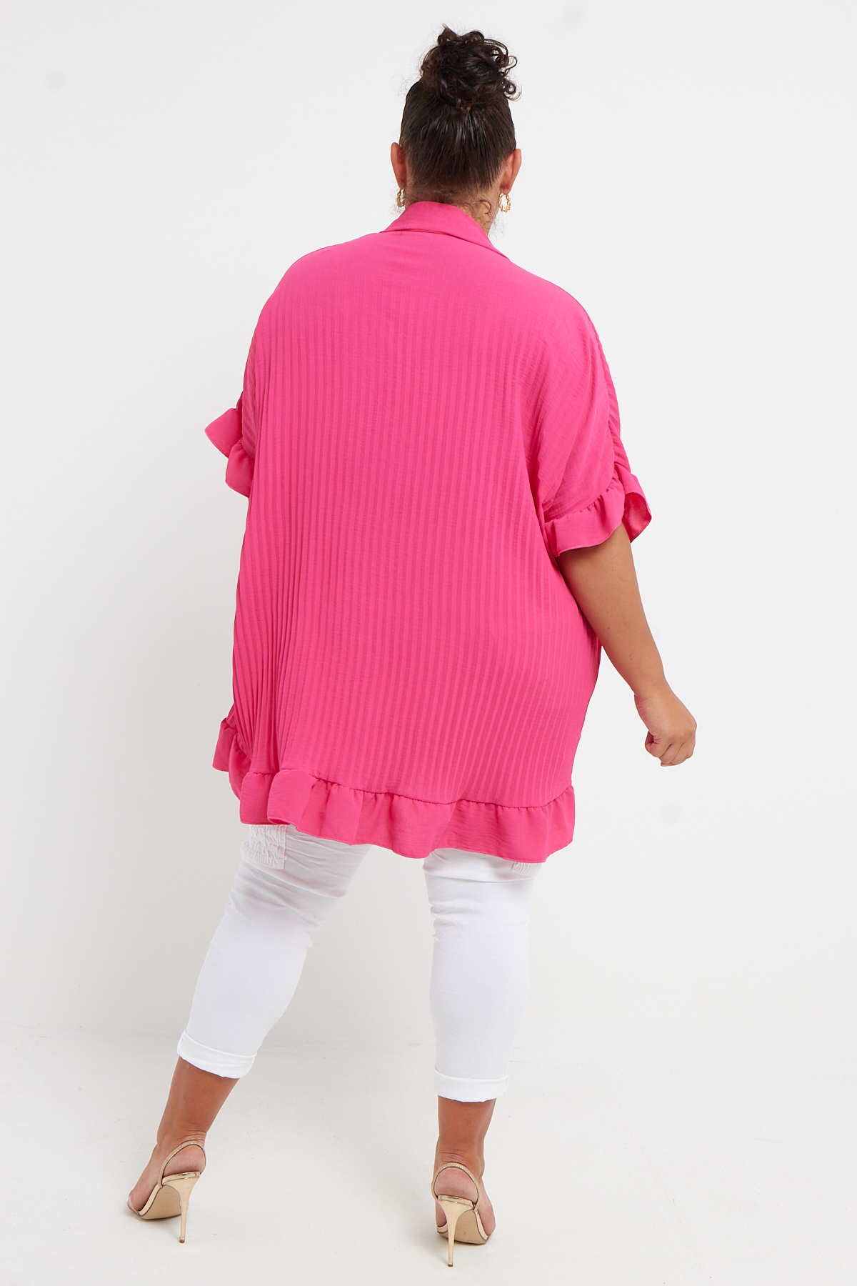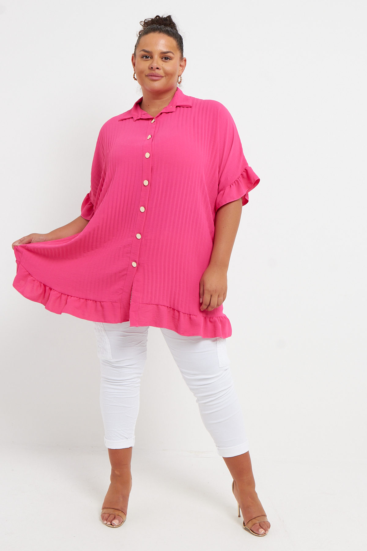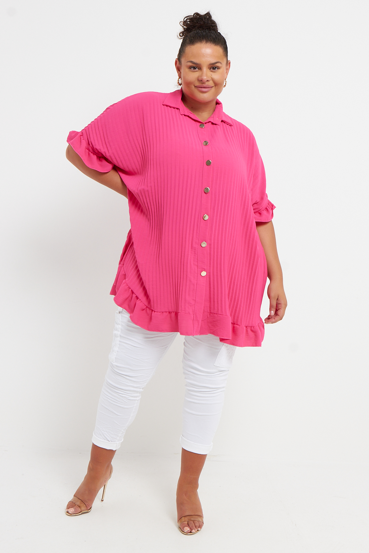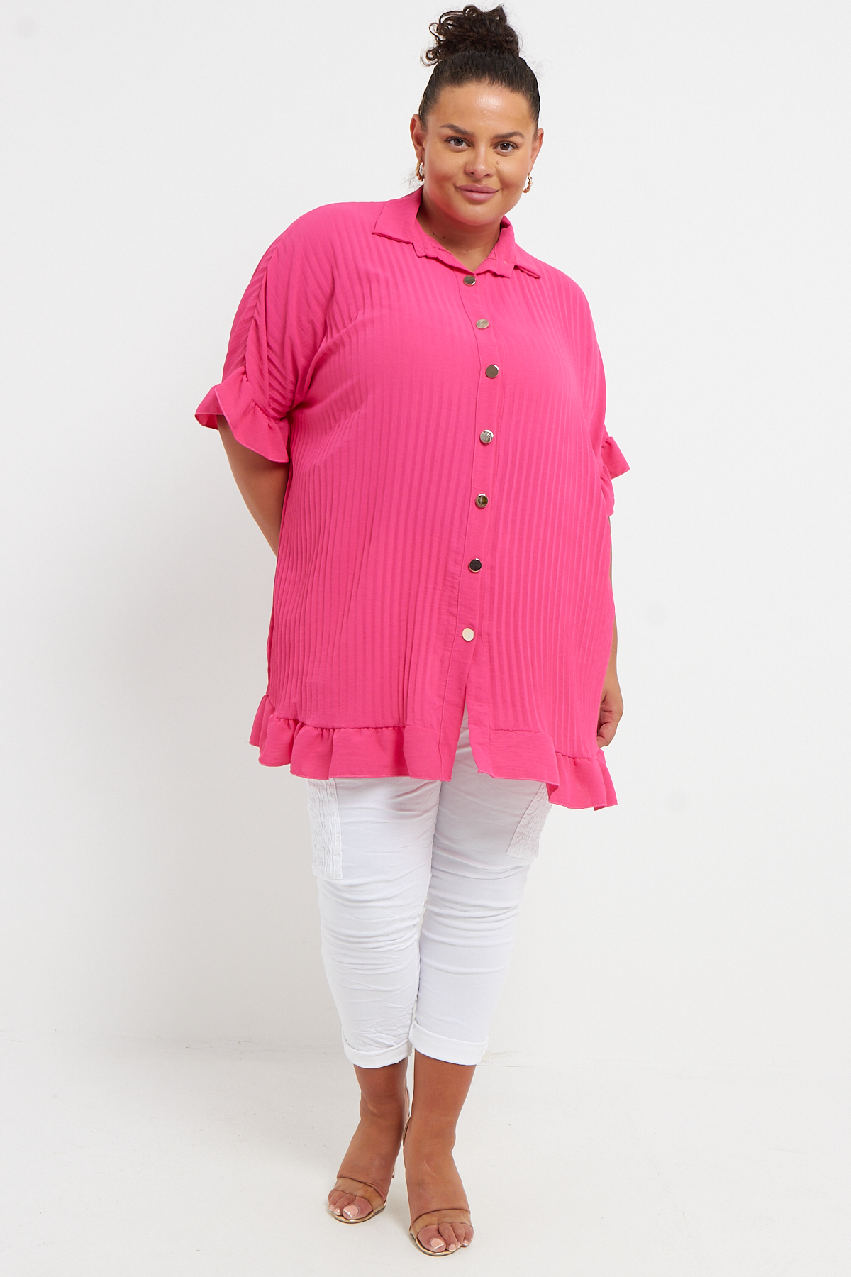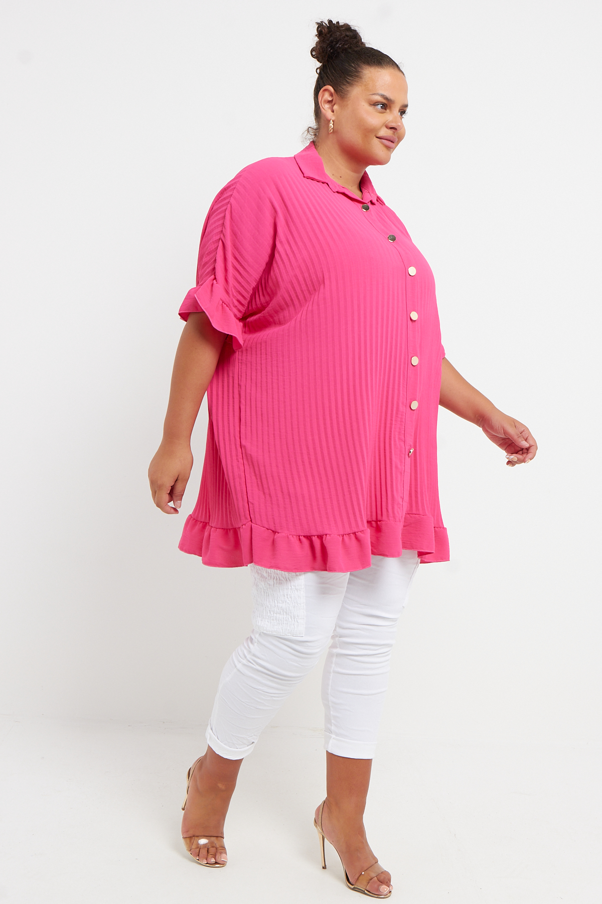 One Size Pink Short Sleeve Rib Detail Button Through Fill Hem Top x 5
