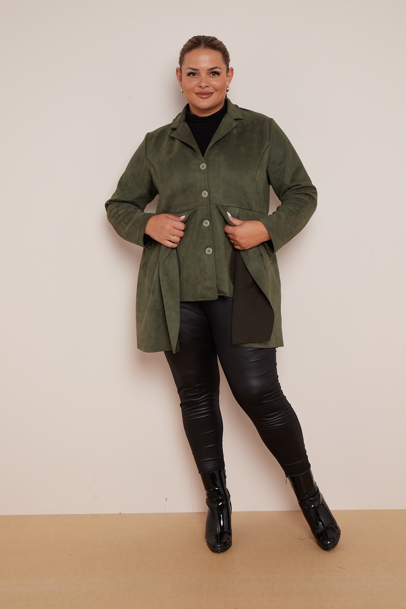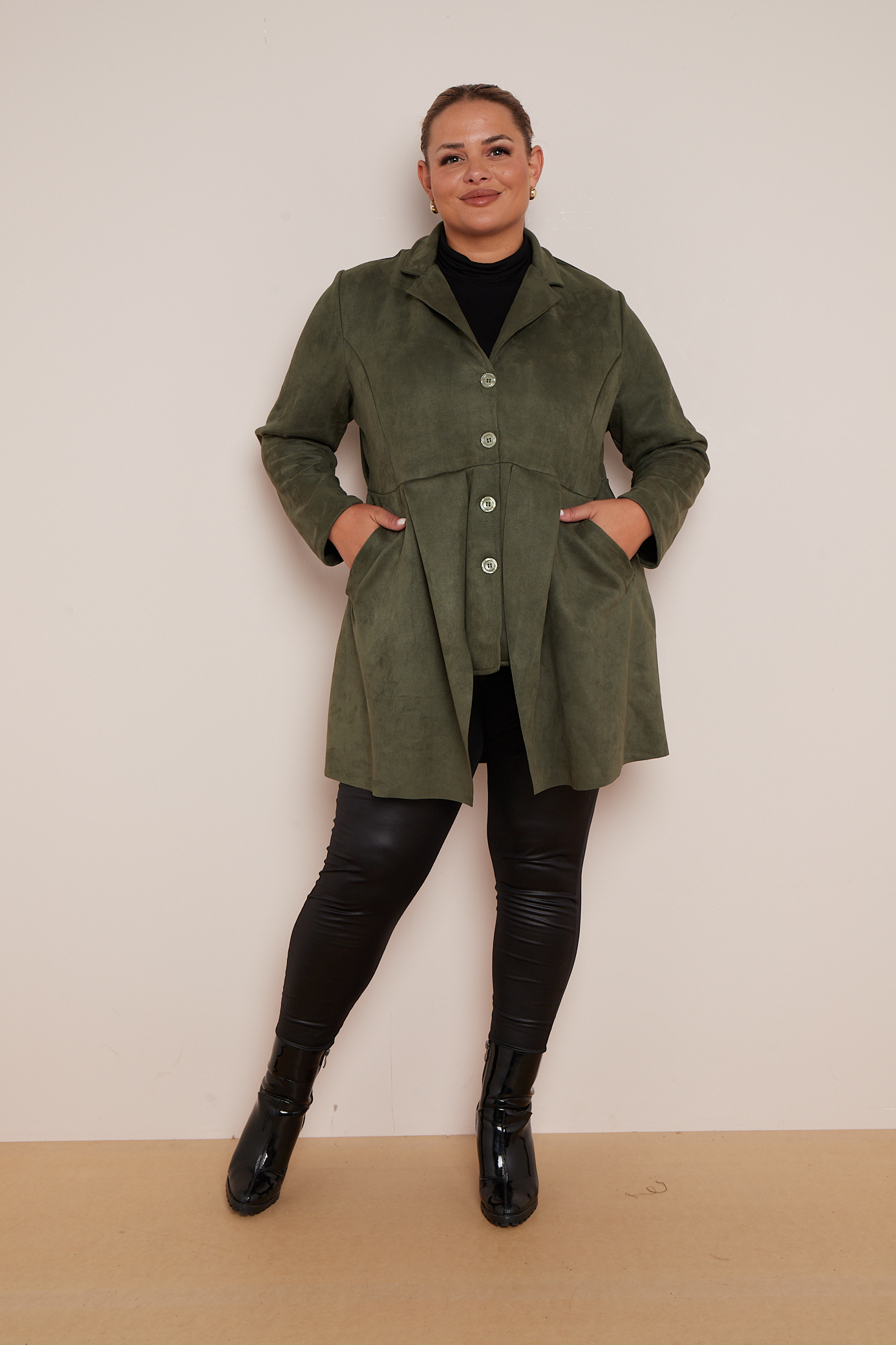 Plus Size Khaki Suedette Button Through Jacket With Pockets x 5