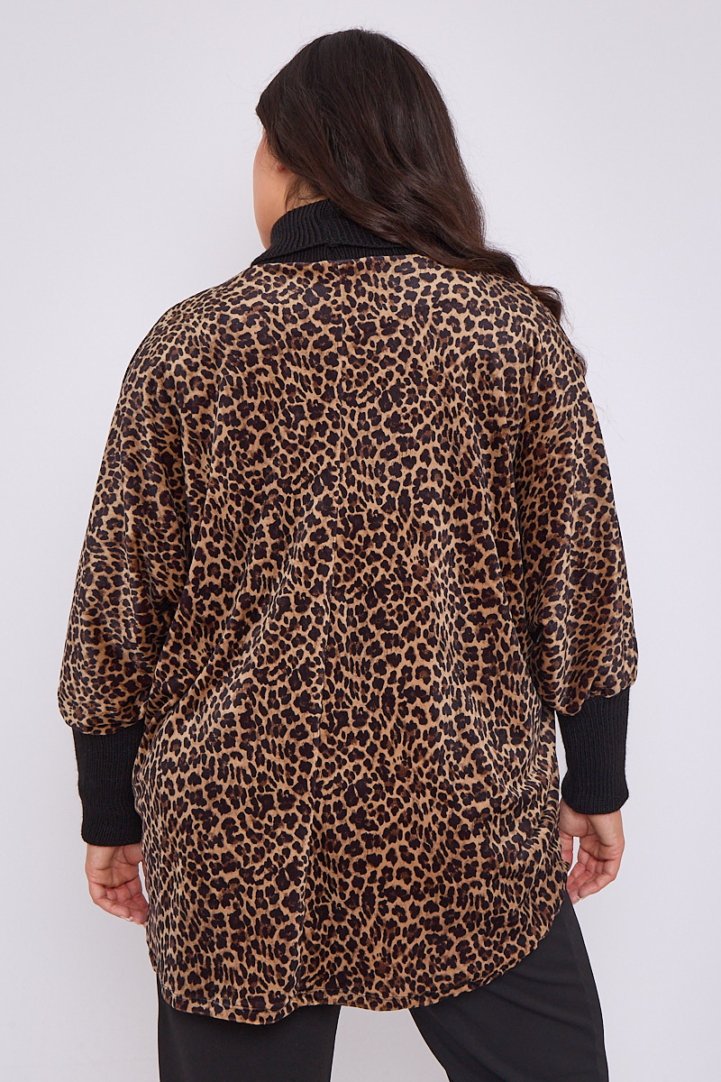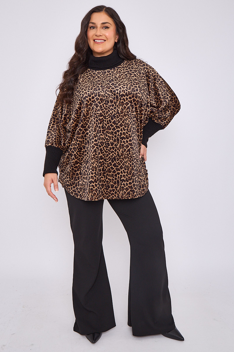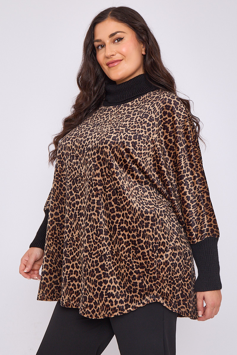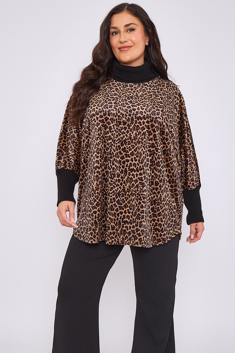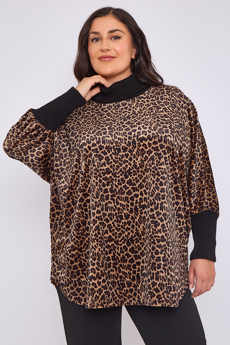 Plus Size Animal Print Contrast Long Sleeve Jumper Top x 5